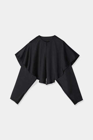 どの角度から見ても美しいケープデザインが特徴のサテンブラウス。