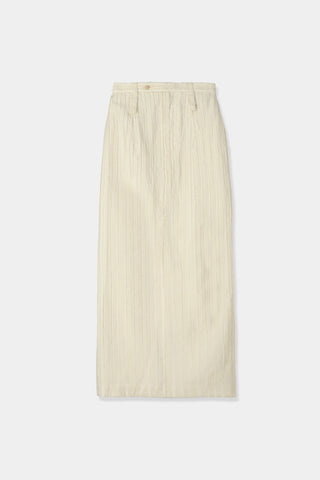 カットジャガード生地の毛羽感でストライプ柄を表現したペンシルスカート。