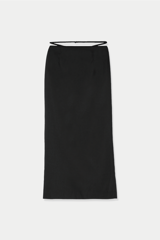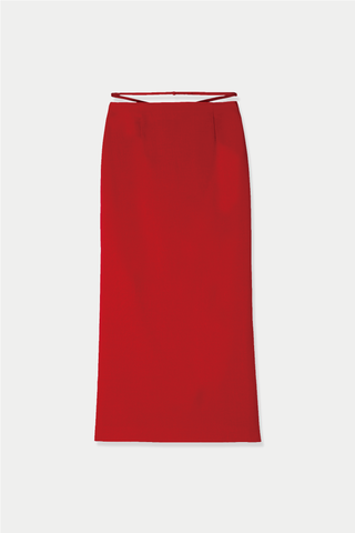 ローウエストデザインで、サイズアジャスターが付いているストラップベルトをアクセントとしても、中に仕舞い込みシンプルなペンシルスカートとしてもお召しいただけます。