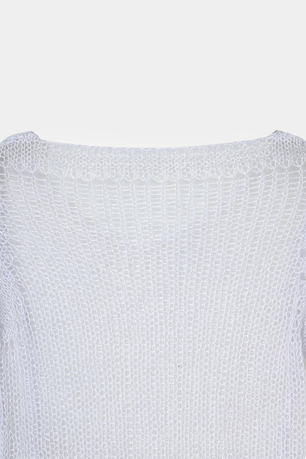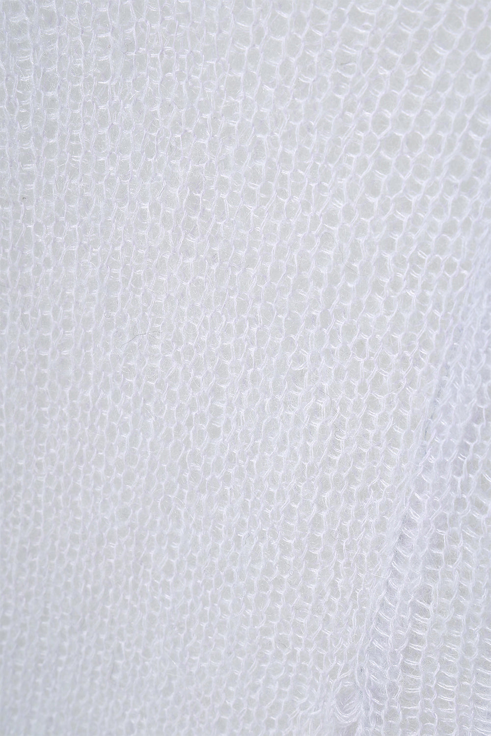 細番手のモヘア糸で編み立てることで、空気を含んだようなやわらかさと、女性らしいニュアンスを感じられる一枚に仕上げました。