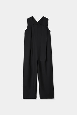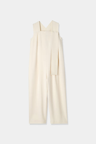 ショルダー部分のタイデザインが目を引くジャンプスーツ。