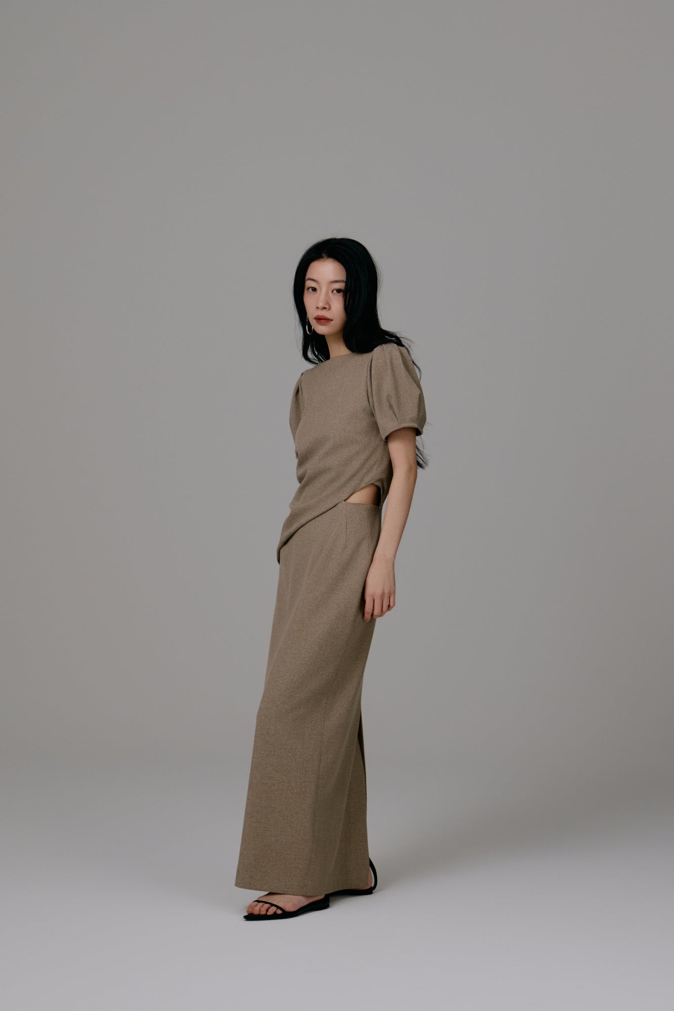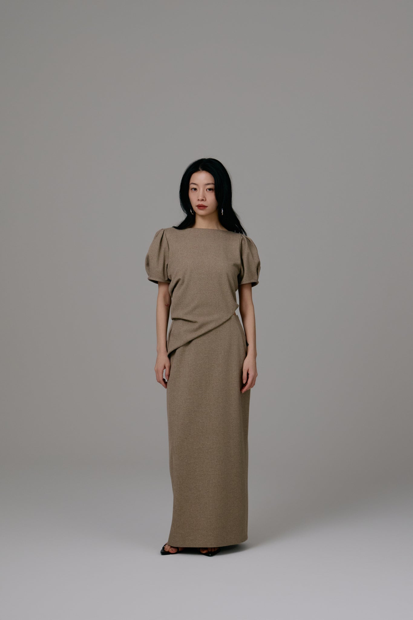ふんわりとしたパフスリーブが程よい甘さを加え、女性らしさを引き立てます。
