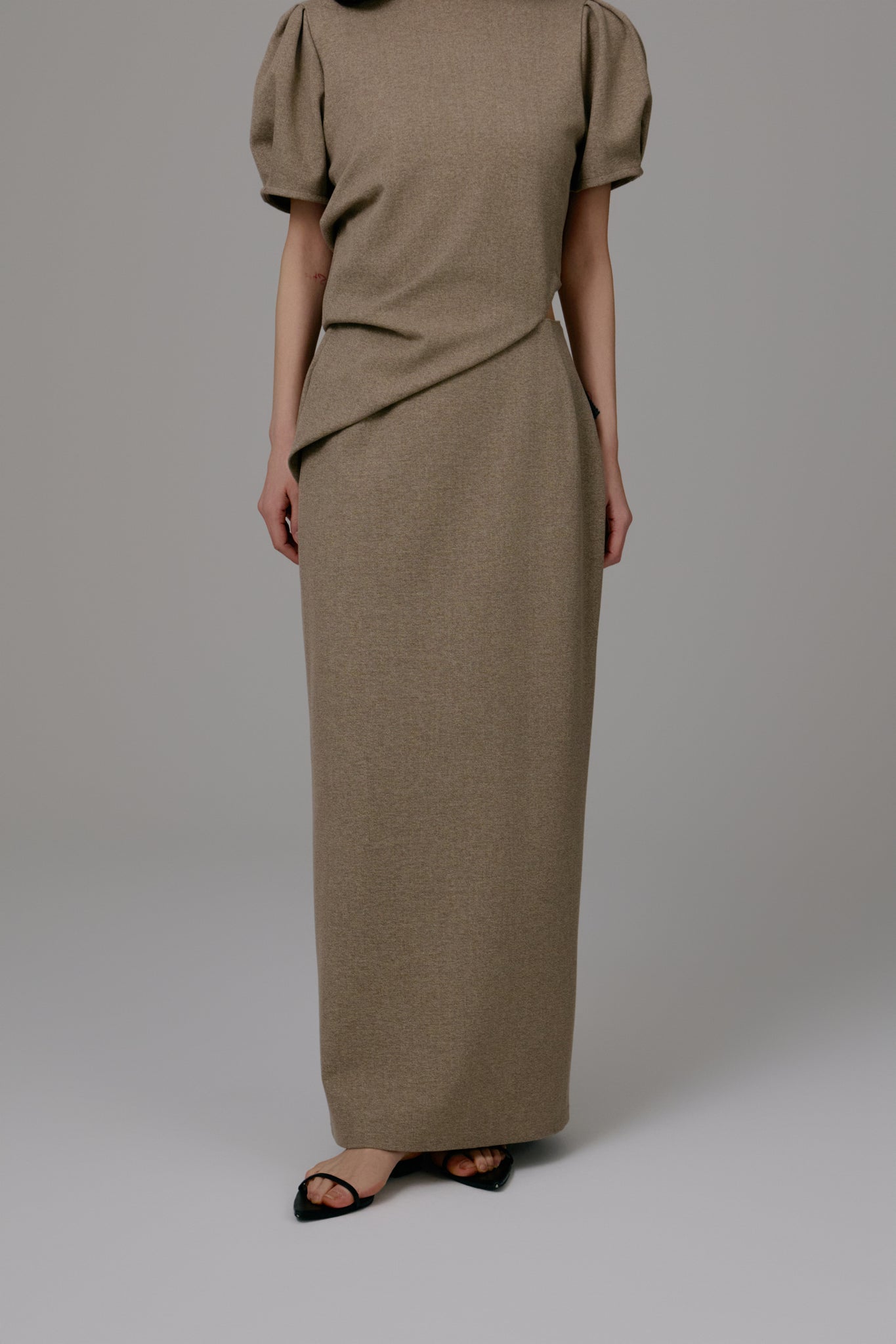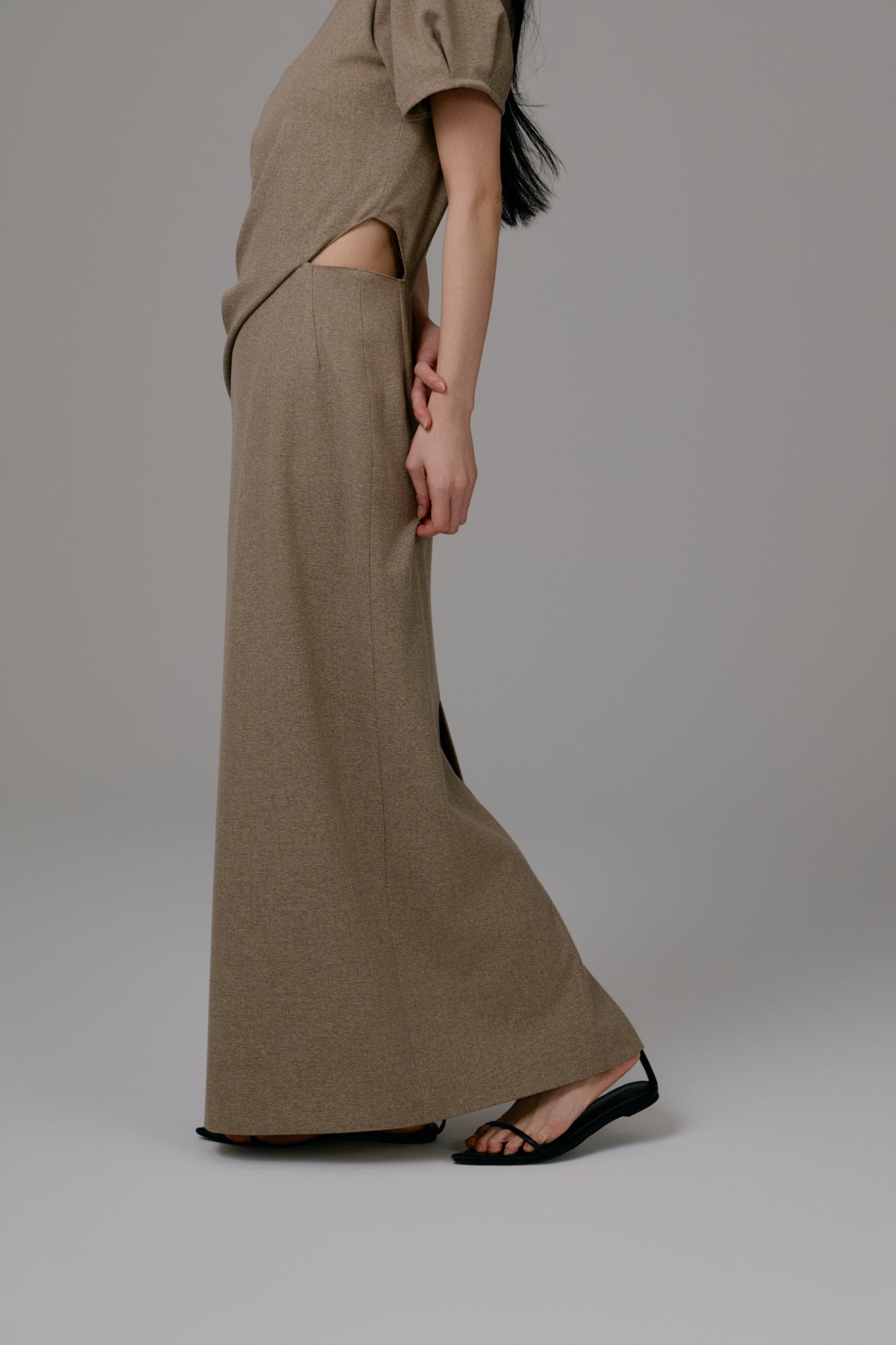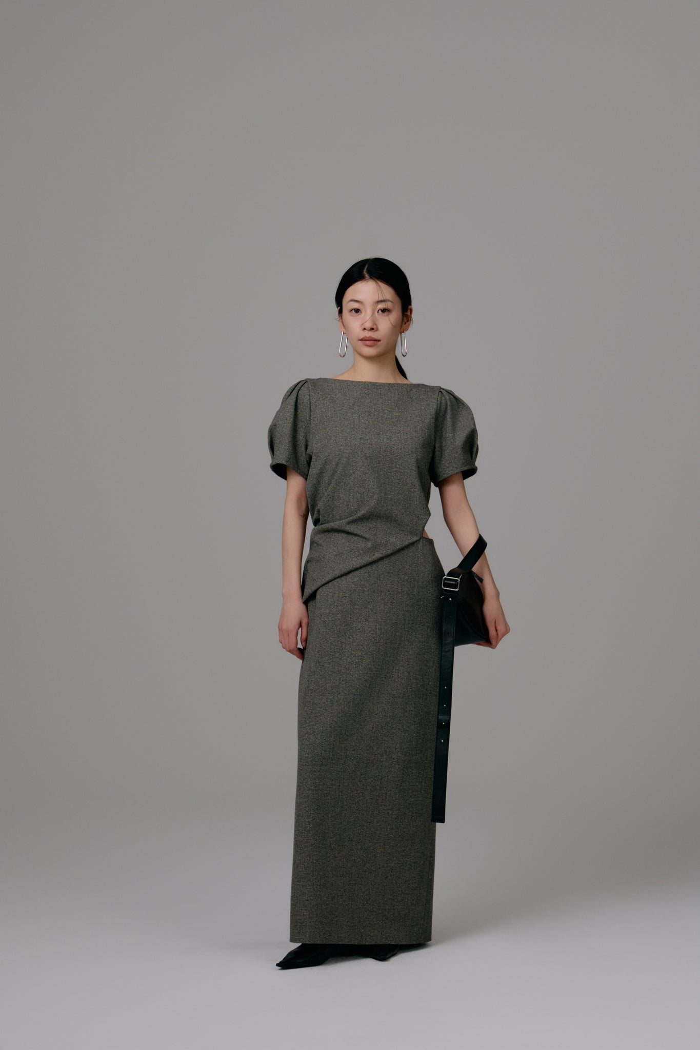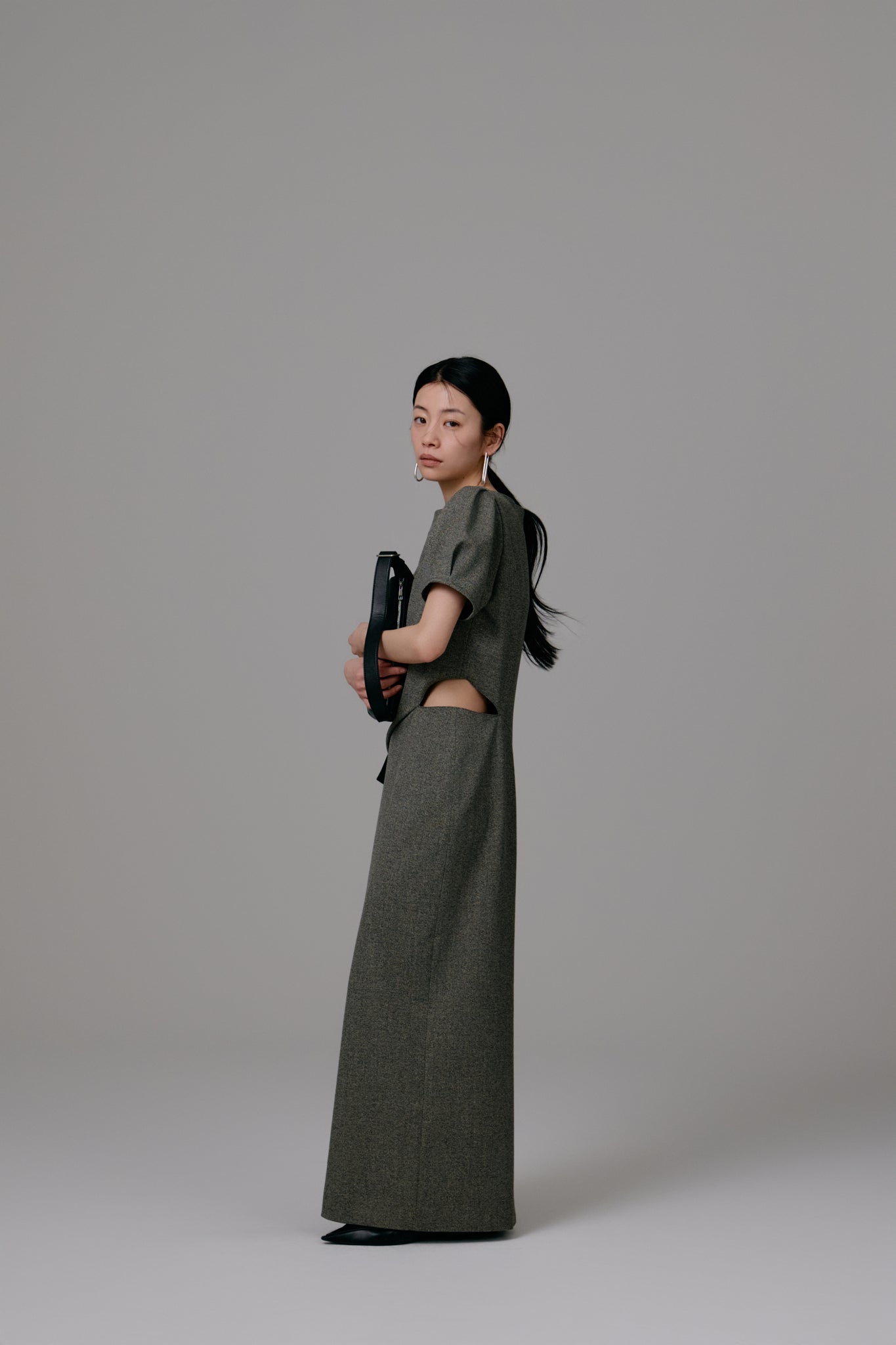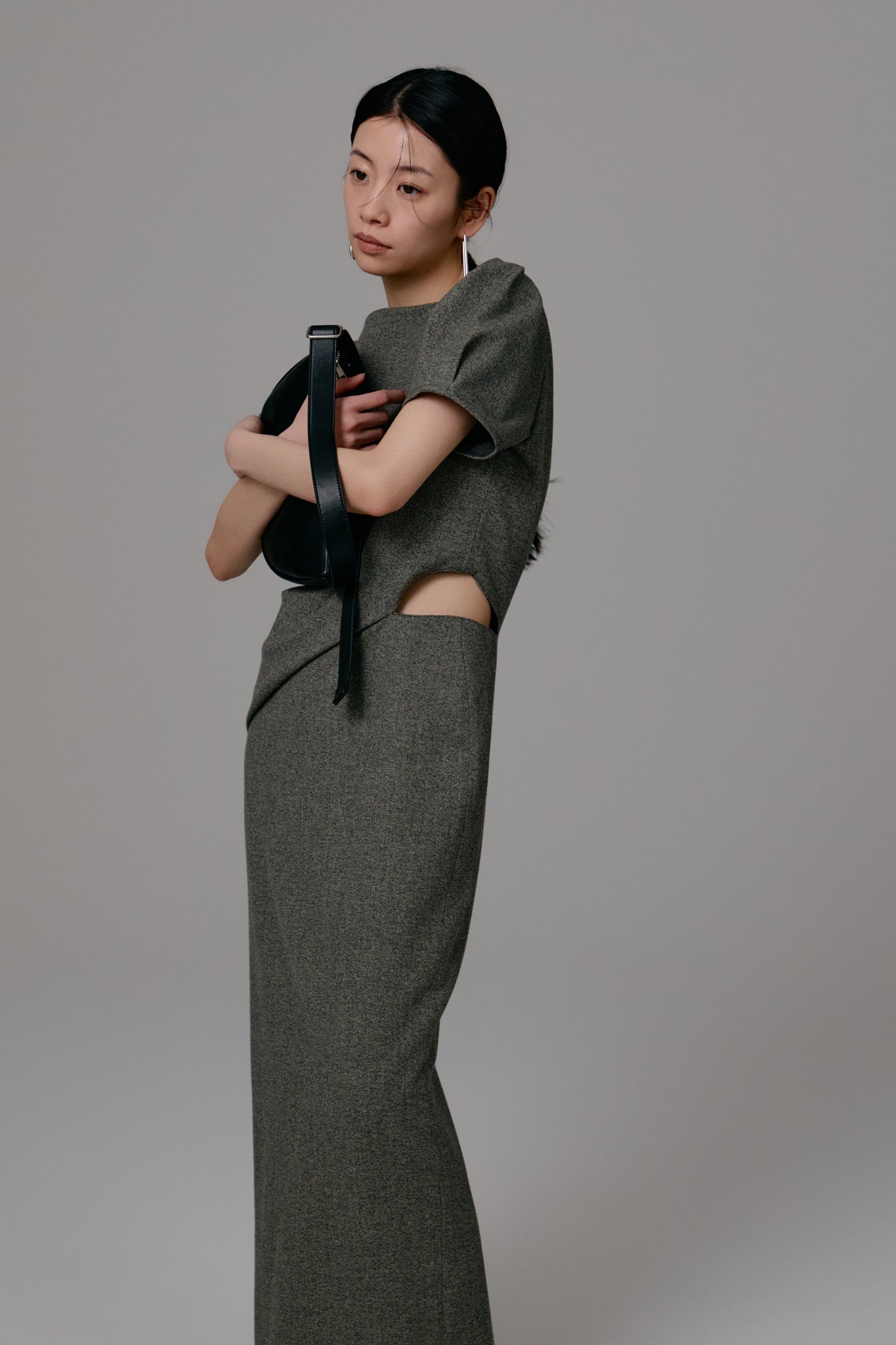 計算されたカッティングが立体的なシルエットを生み出し、ボディラインを優しくカバー。