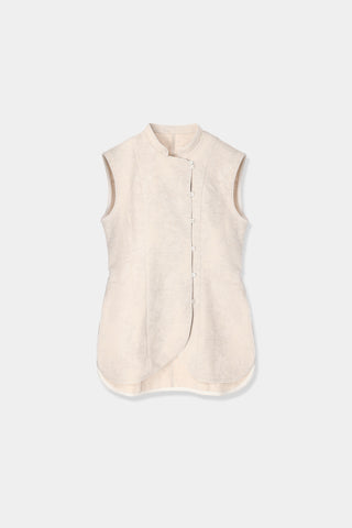 チャイナ風ディテールの前立てが特徴のトップス。