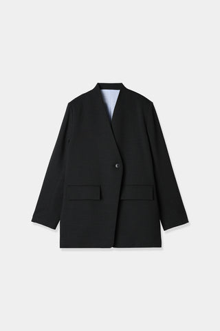 ベースのデザインはシンプルに、サイドスリットや美シルエットを実現する肩パッド、ワンボタンなどディティールにこだわりを散りばめたアイテム。