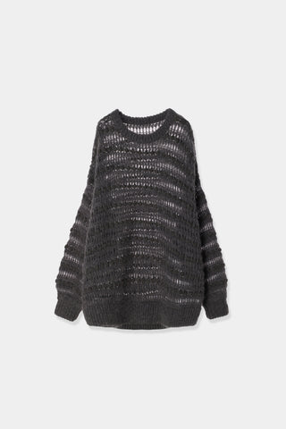 A delicate mohair knit pullover with two types of yarn woven in a border style.