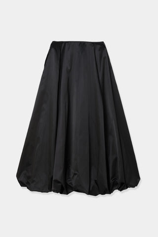 生地特性を生かした立体感のある構築的なバルーンシルエットは裾部分のギャザー分量を細かく検討し、吊り上げた仕様にすることで、広がりすぎず、萎まない理想のバルーンに仕上げております。