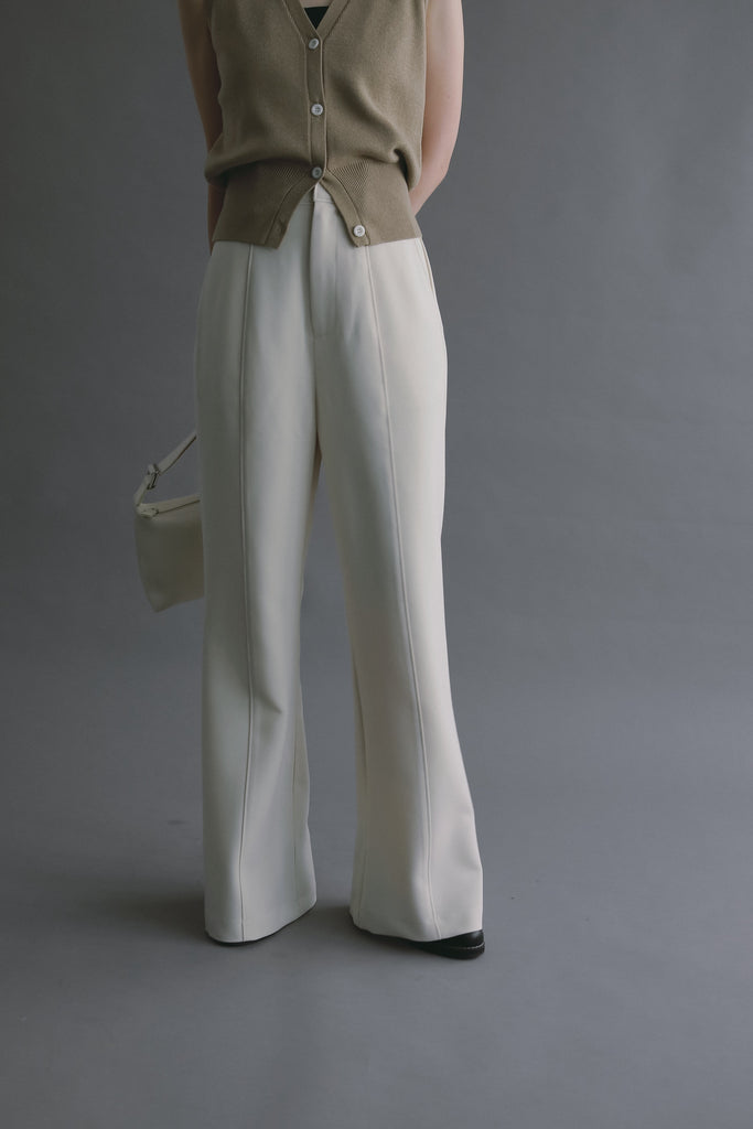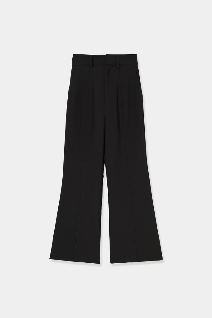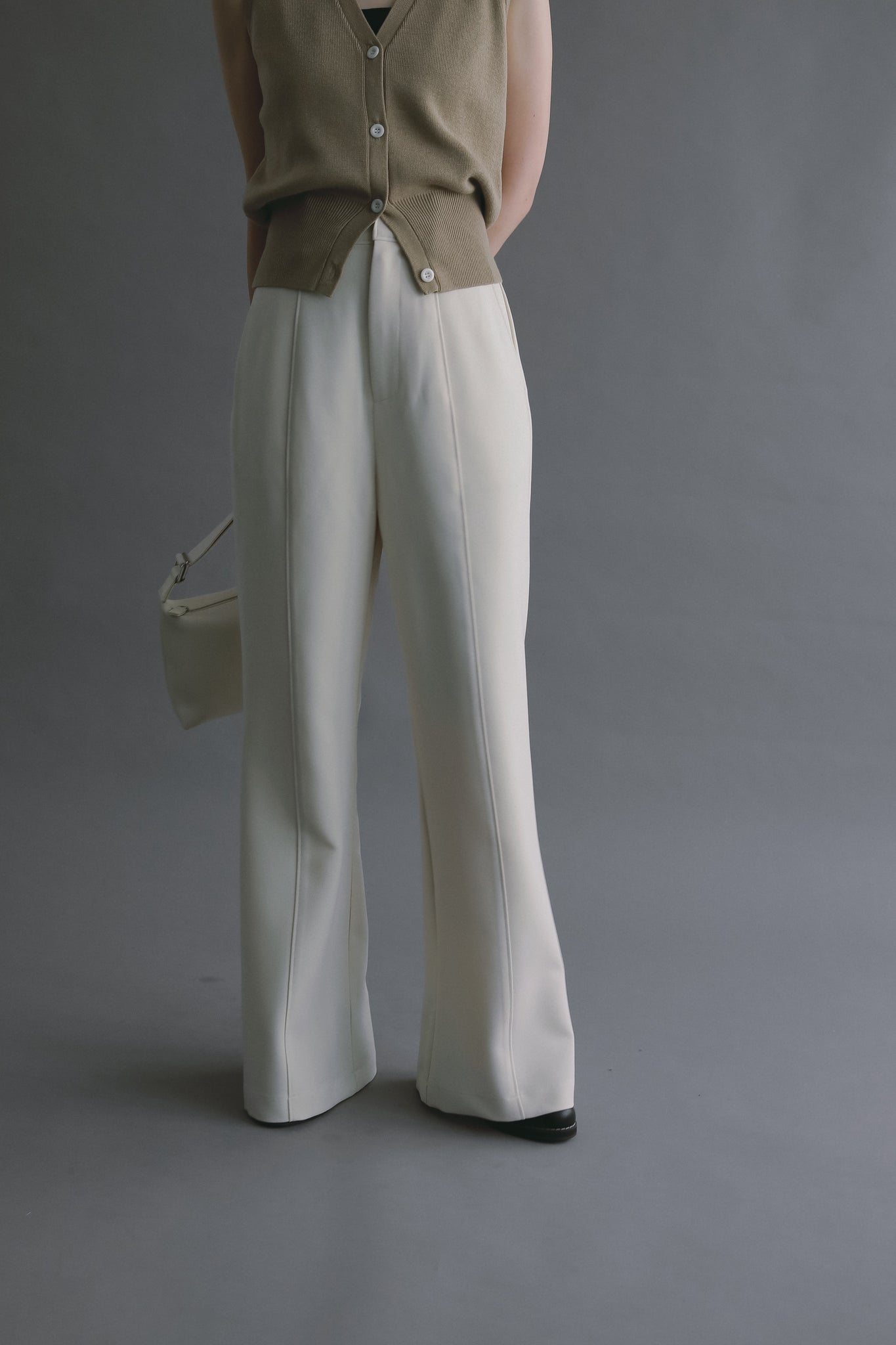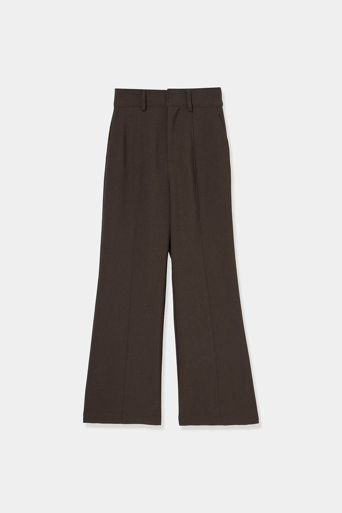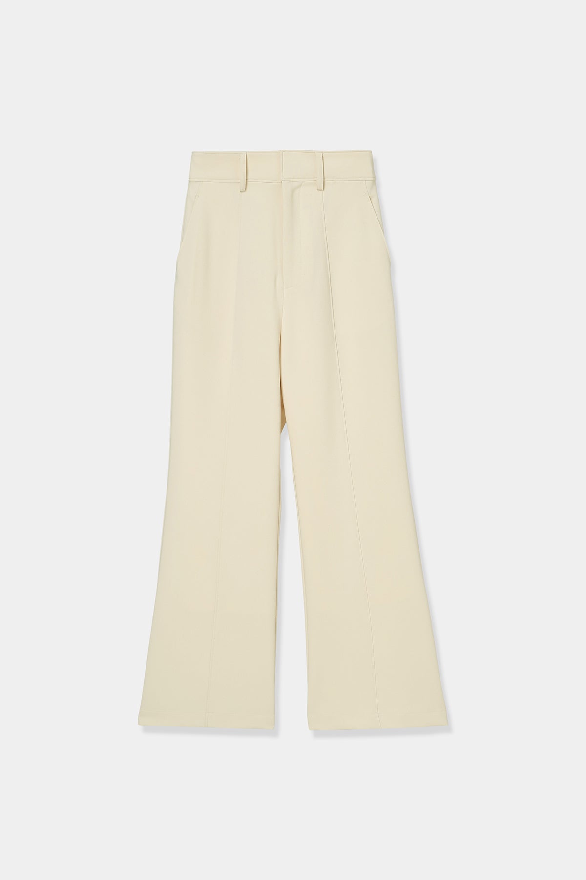 ストレッチの効いた落ち感のある素材を使用した、スライトフレアシルエットパンツ。