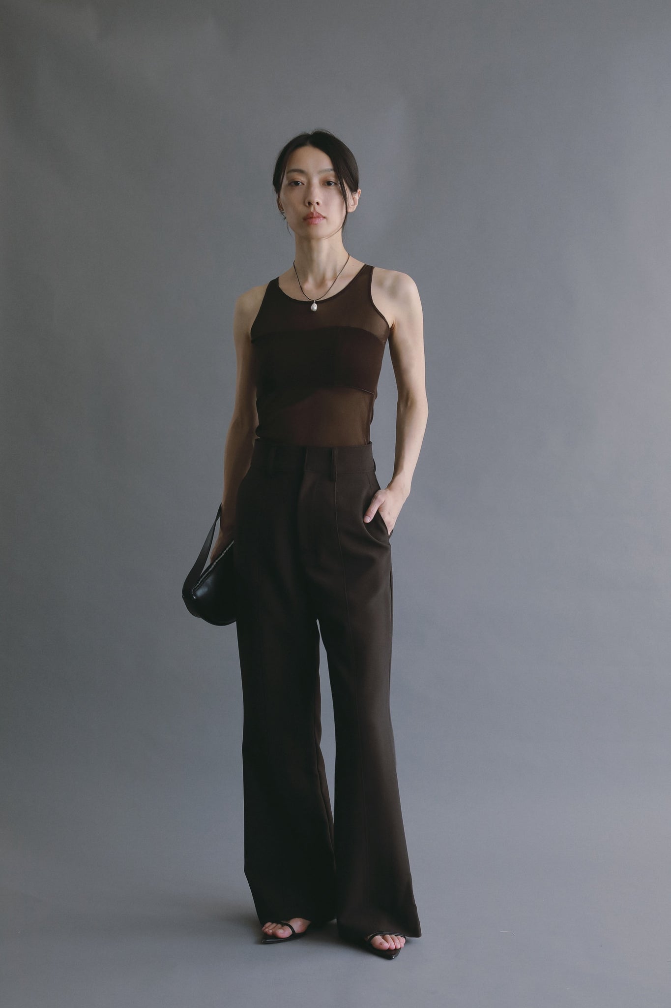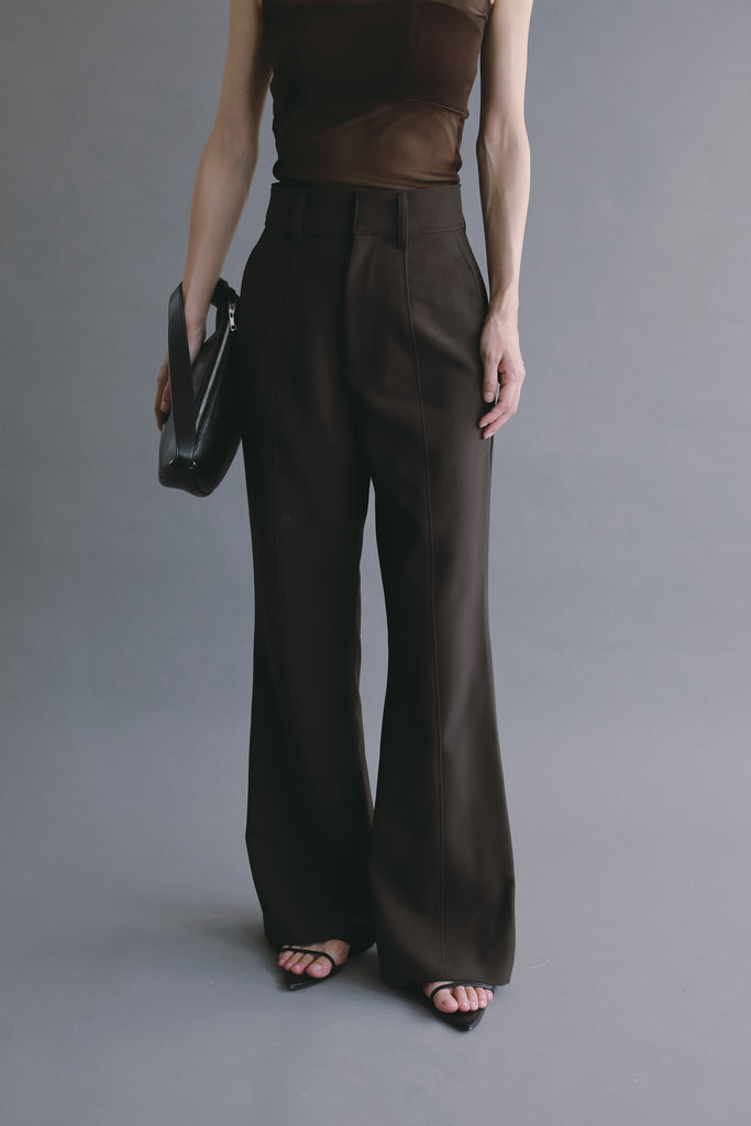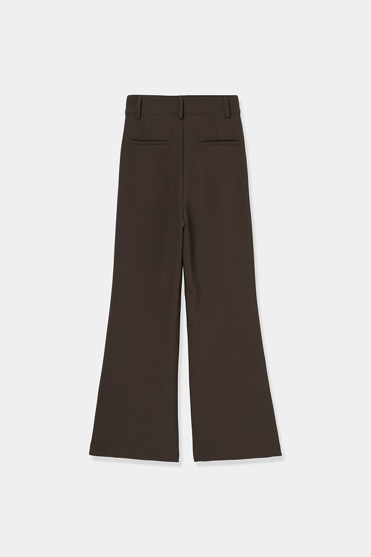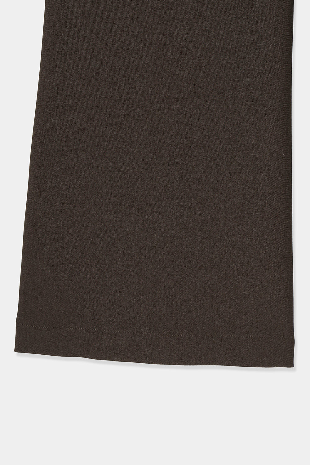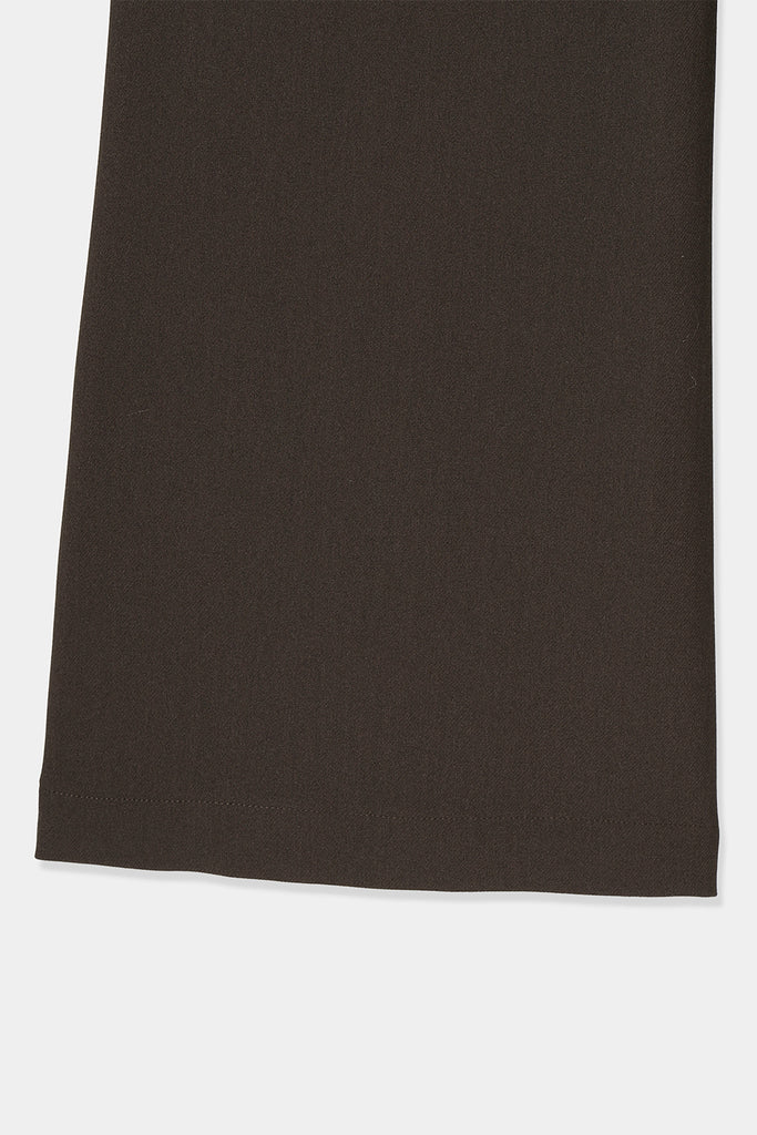 ストレッチの効いた落ち感のある素材を使用した、スライトフレアシルエットパンツ。