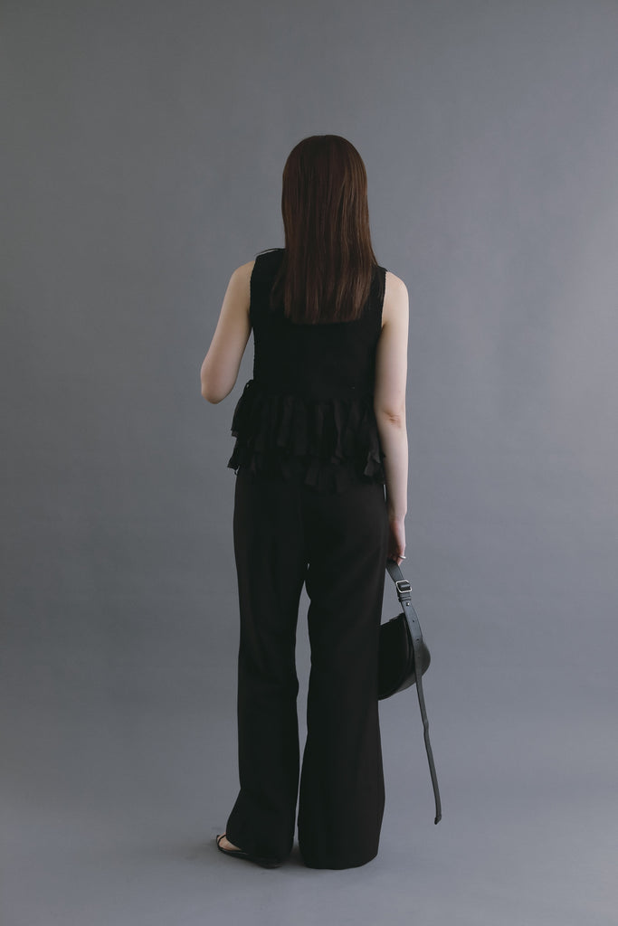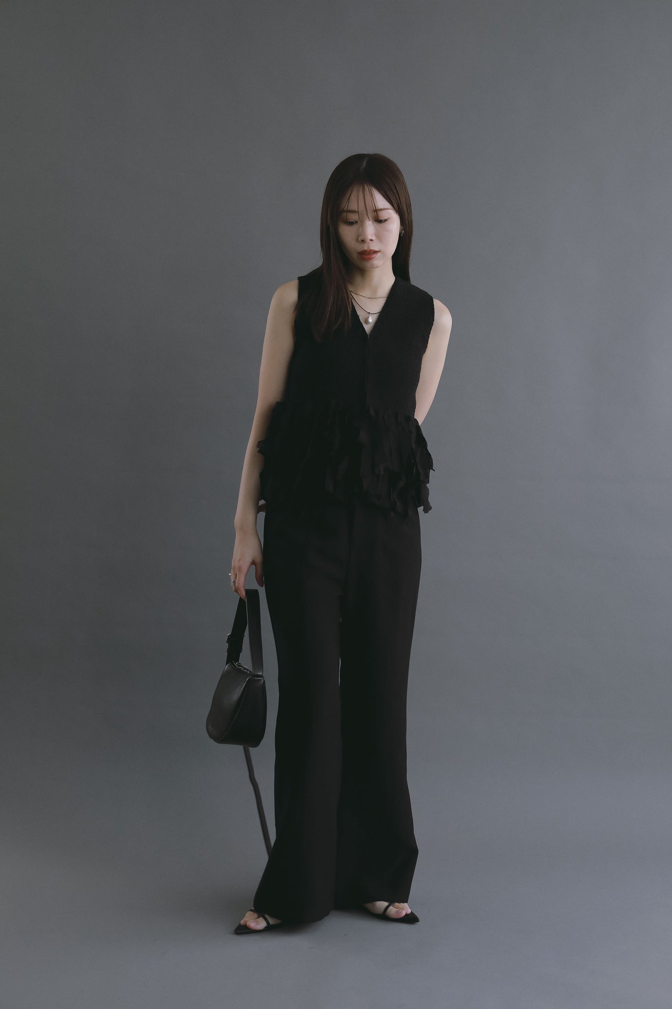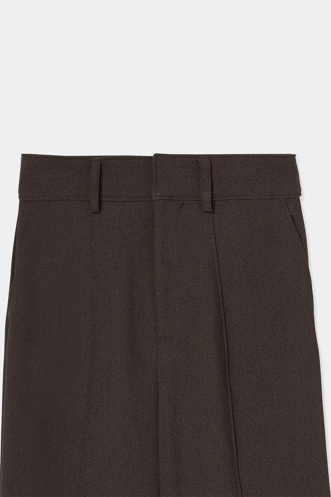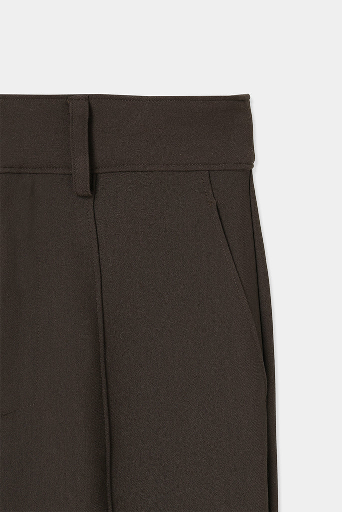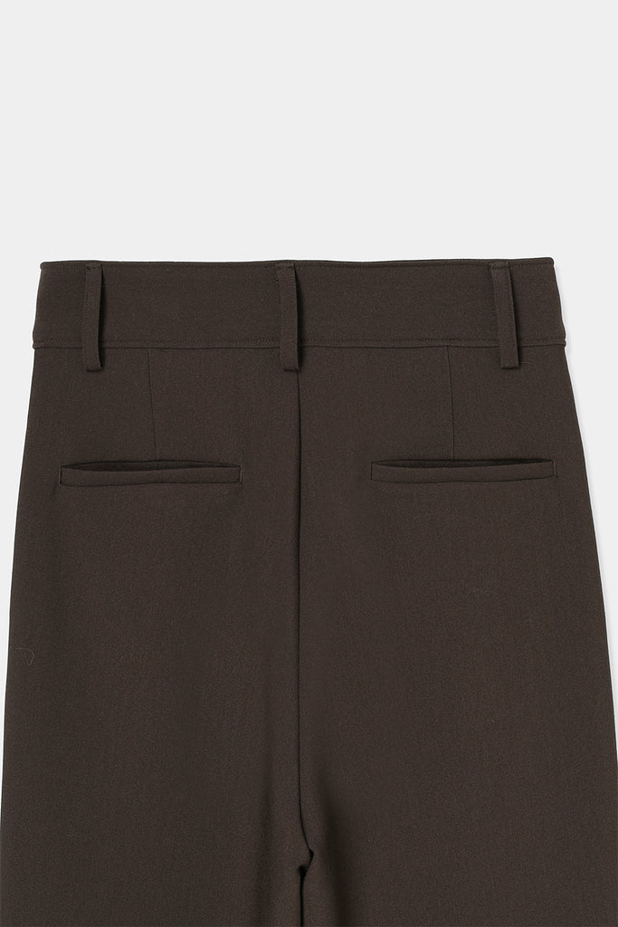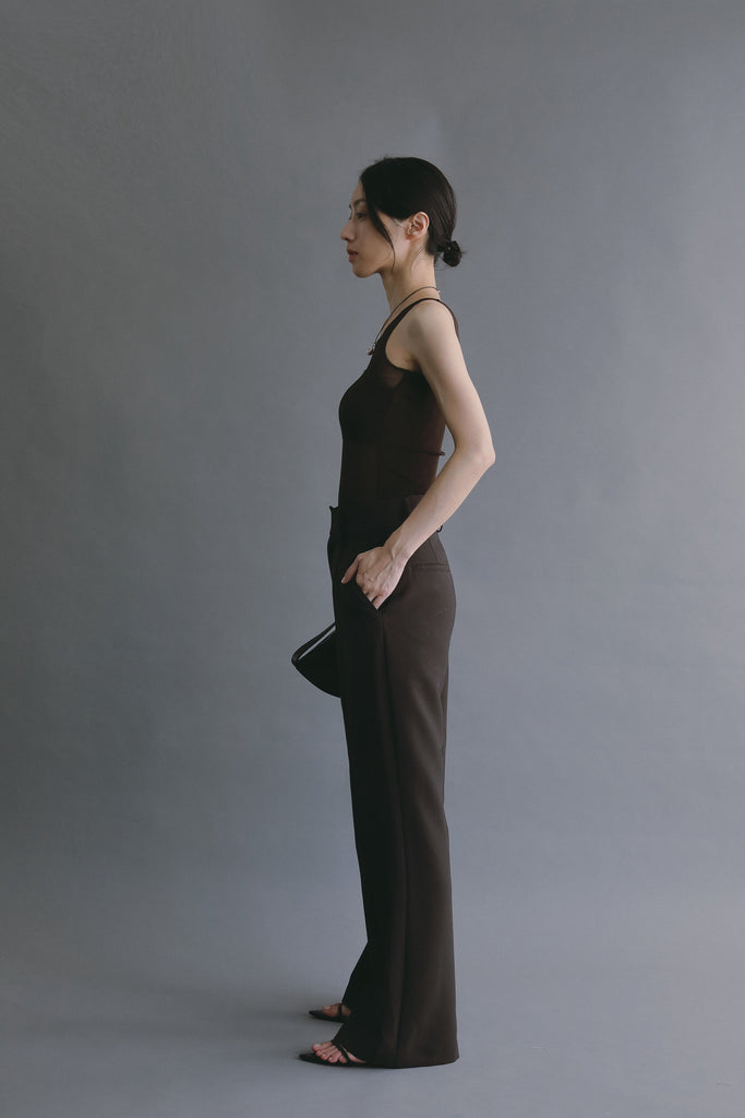 ストレッチの効いた落ち感のある素材を使用した、スライトフレアシルエットパンツ。