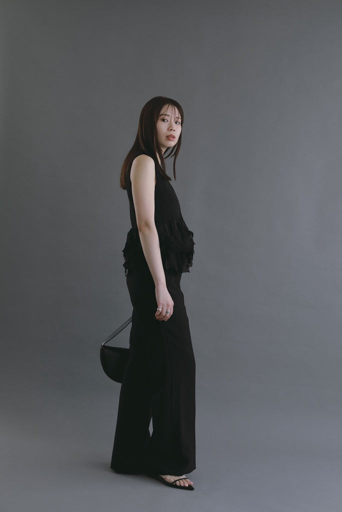 動くたびに生まれる自然な揺れが、シルエットに軽やかな表情を与えます。