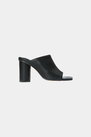 Mule sandals featuring a soft curved instep and wide square toe.