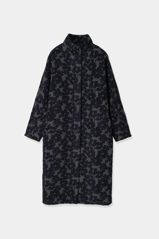 A long coat made of mall jacquard fabric with a wool-like texture.