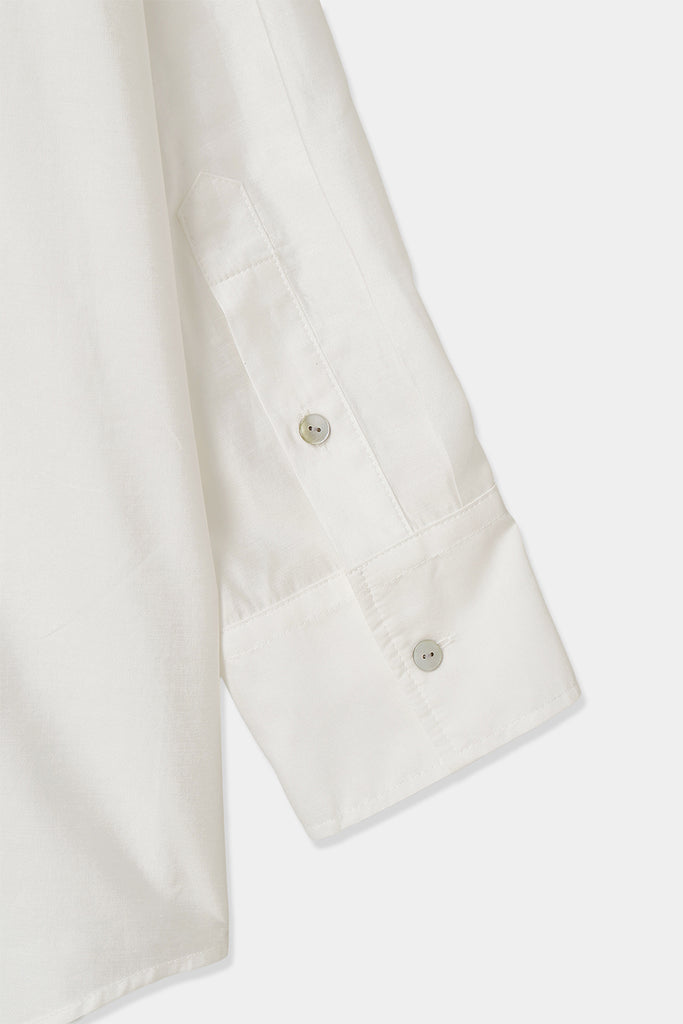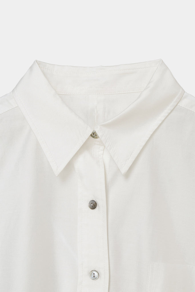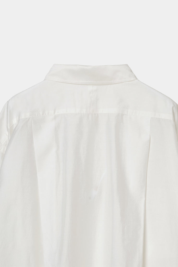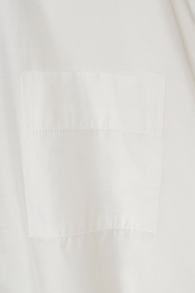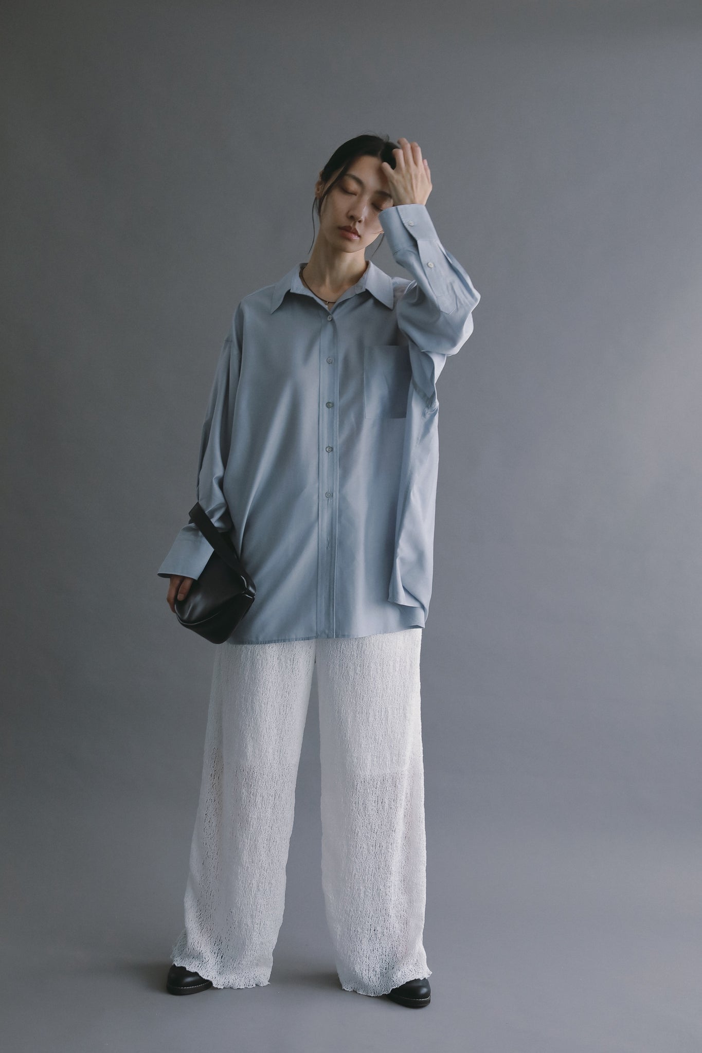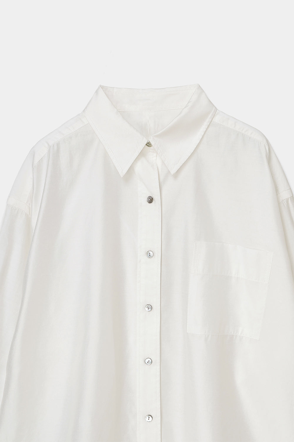 なめらかな落ち感と、ほのかな光沢を感じさせる素材を使用したオーバーサイズシャツ。