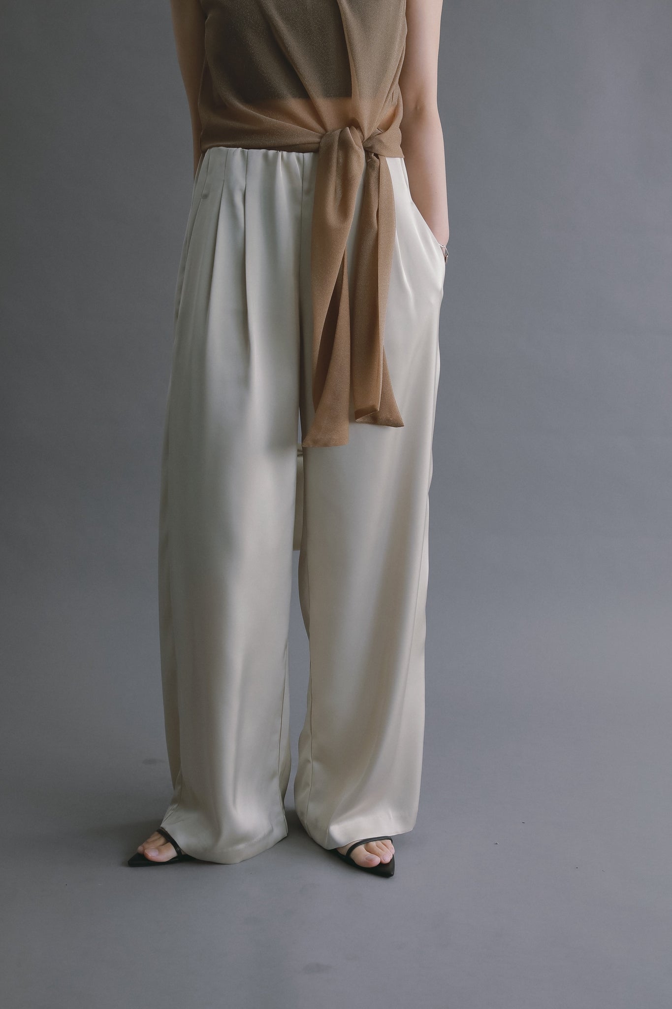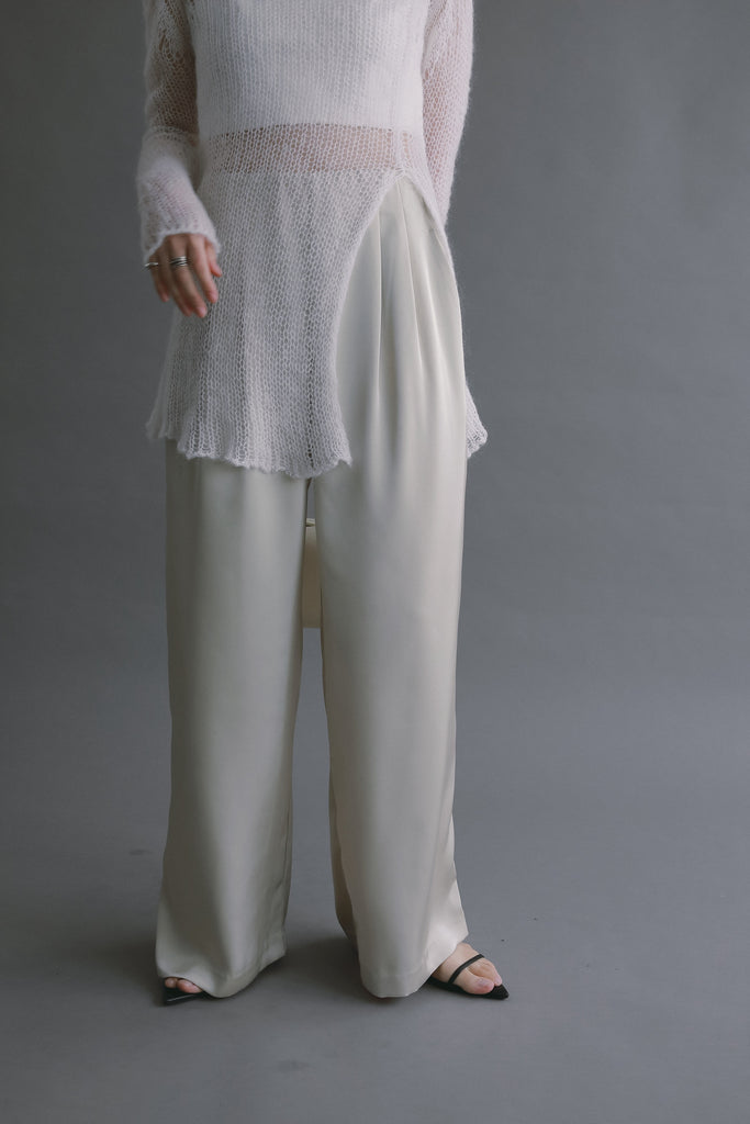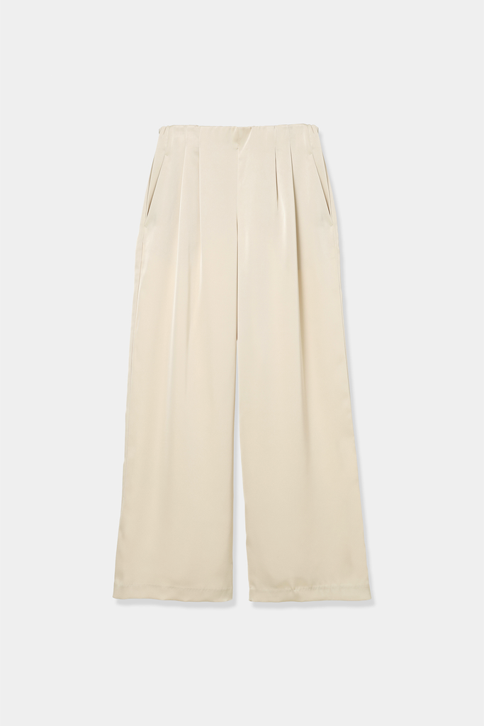 上質なサテン生地を使用した、軽やかな履き心地のイージーパンツ。