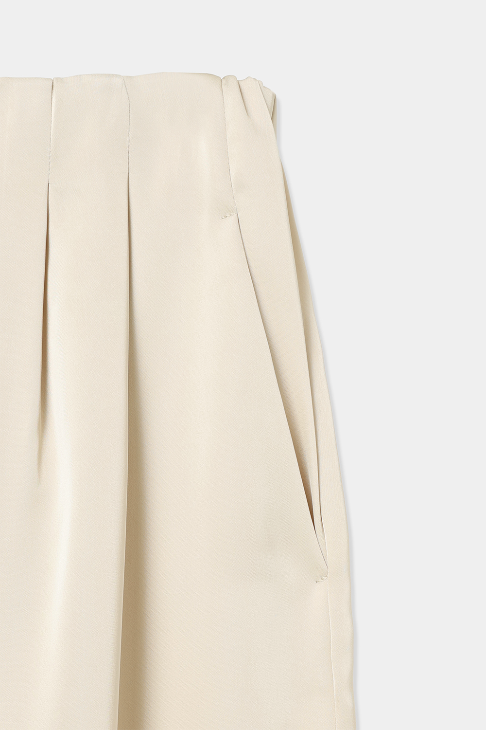 ウエストはゴム仕様でリラックス感がありながら、フロントに施した2本のタックが縦のラインを強調。