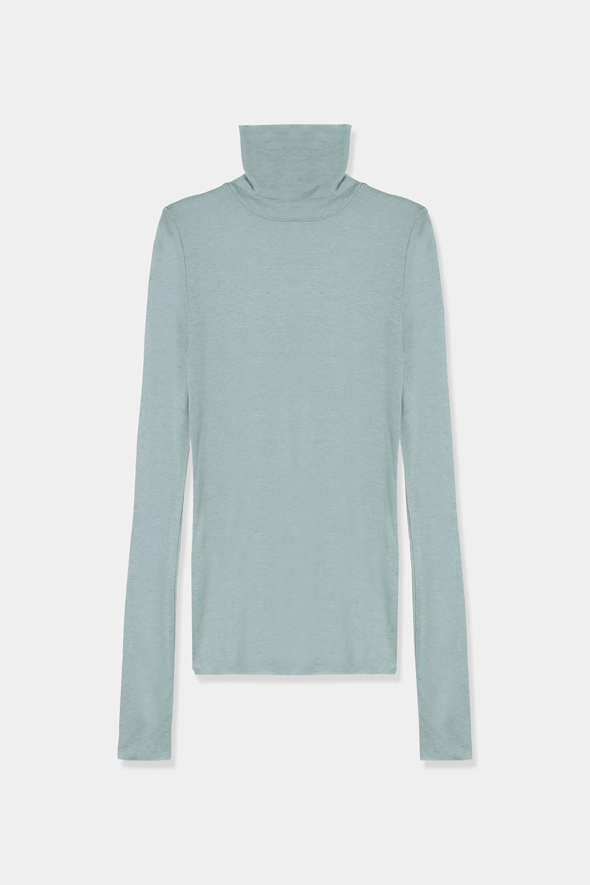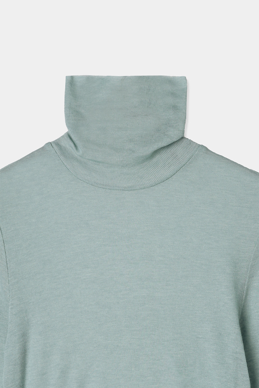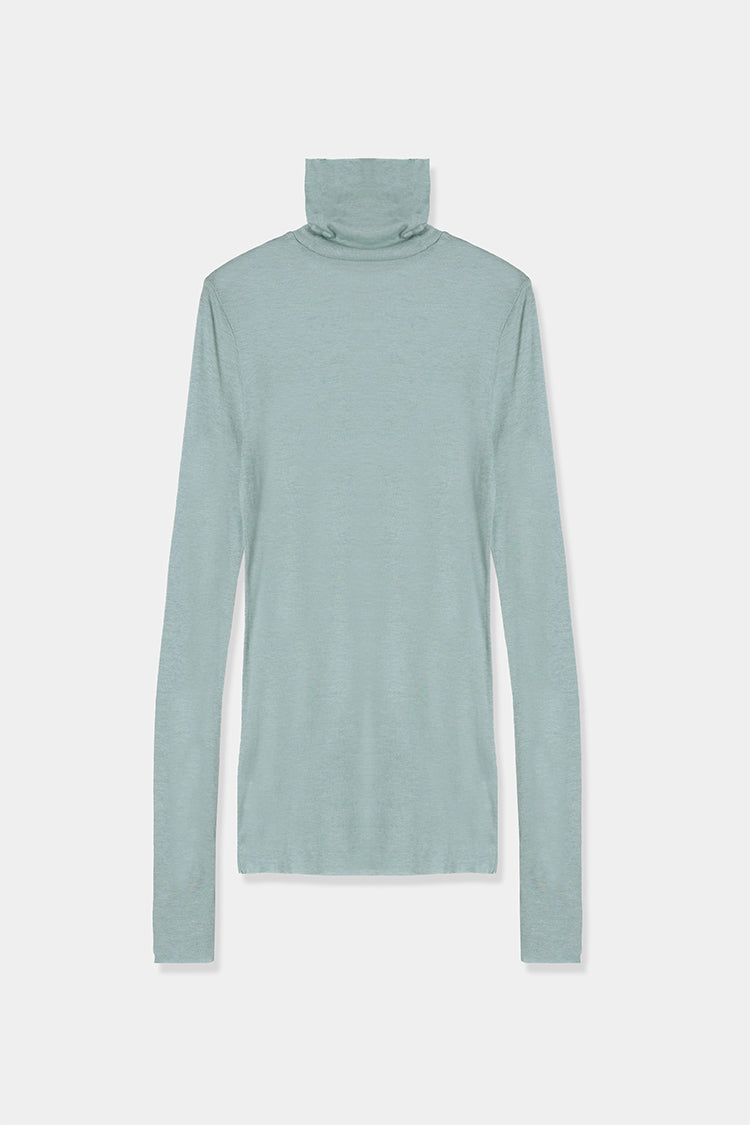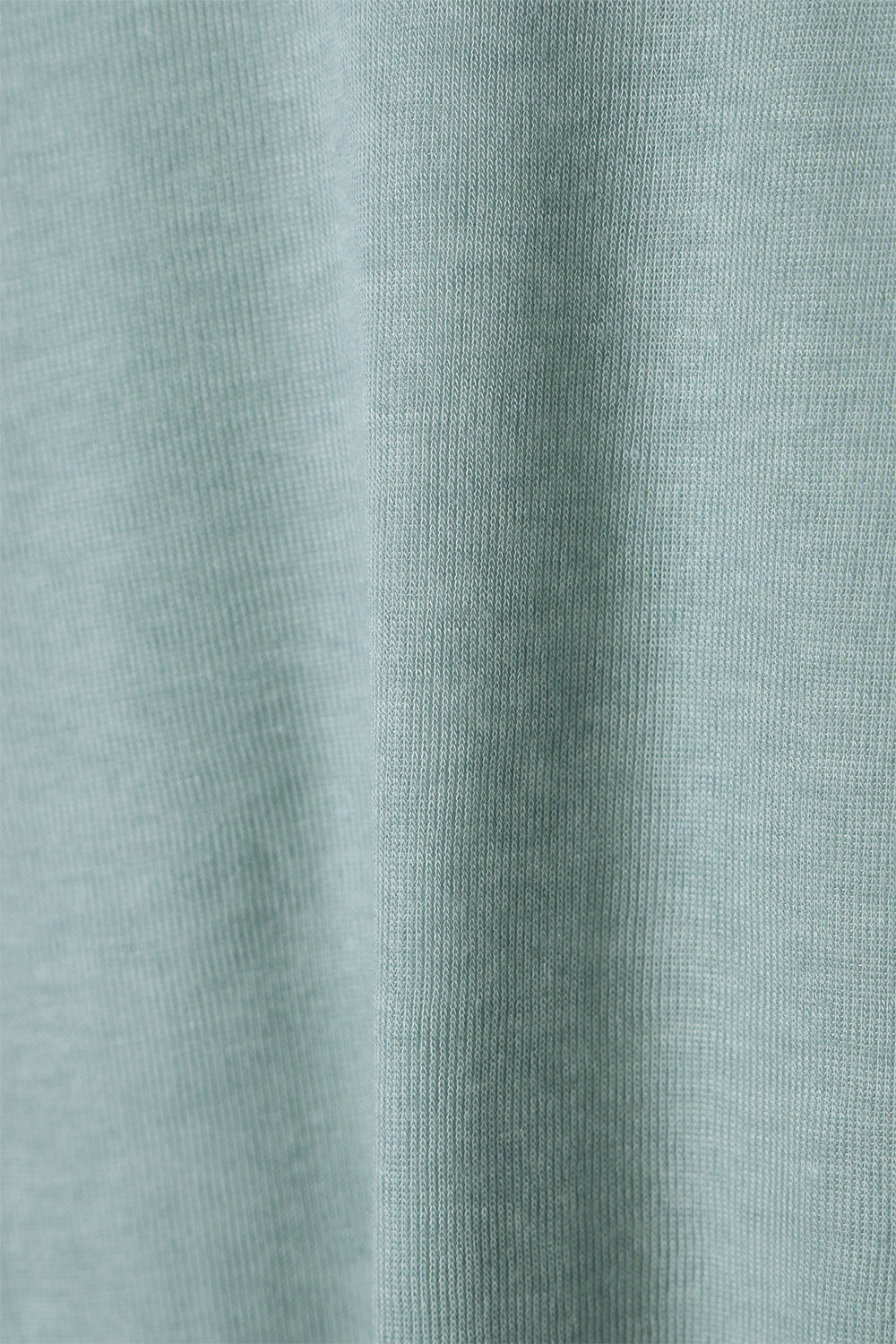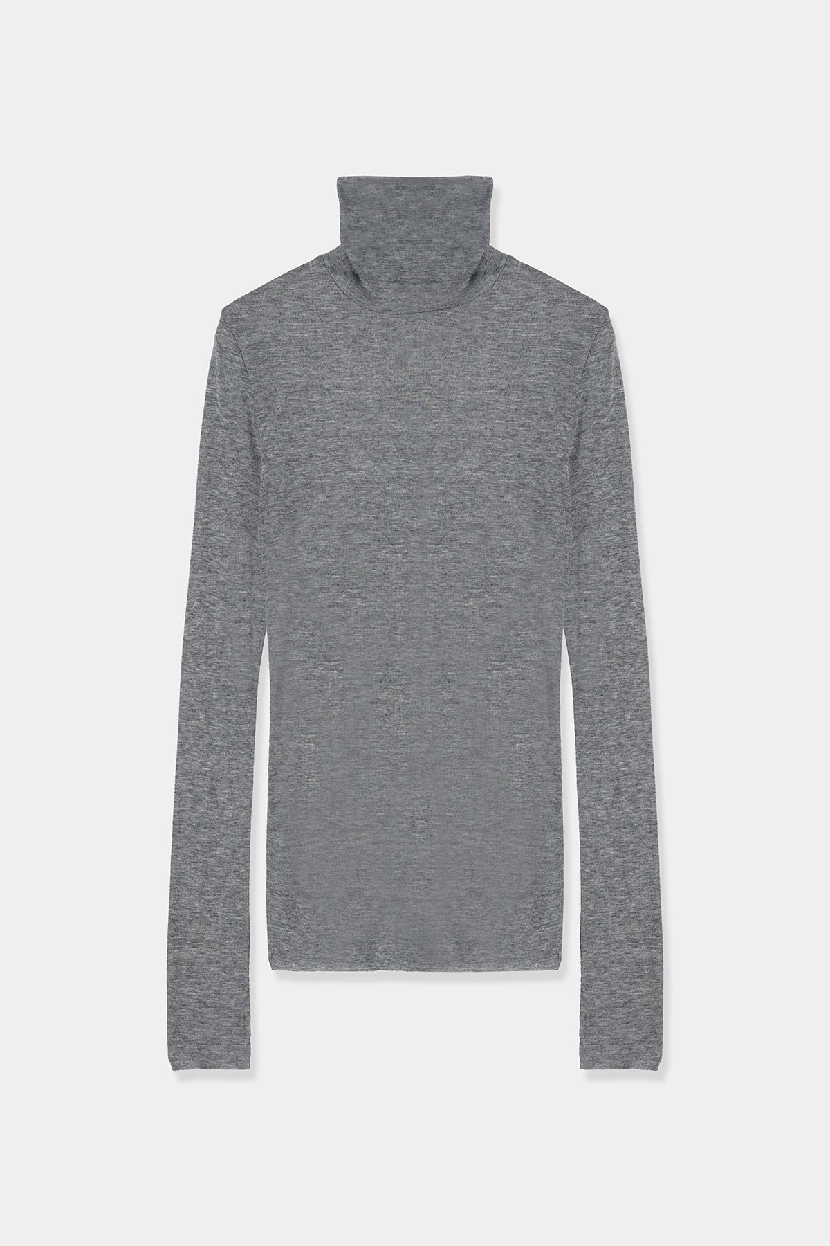 フィンガーホールを施した長めのスリーブデザインはモードな印象を与え、ジャケットやニットとのレイヤードスタイルにも映える仕上がり。