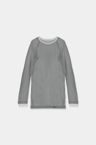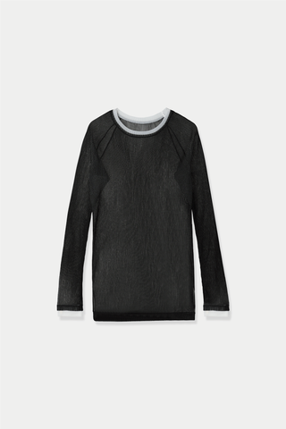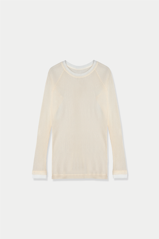 衿ぐりと袖口は白配色レイヤード仕様にする一手間を加え、ワンランク上のシアーニットを目指しました。