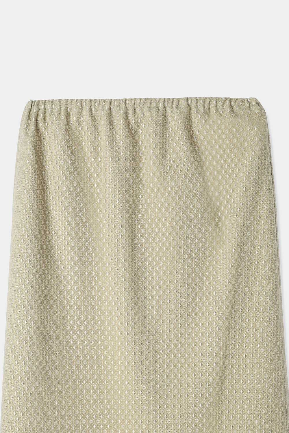 ゴムウエストのためリラックスした着用感ながら、エレガントなディティールが特別感を演出します。