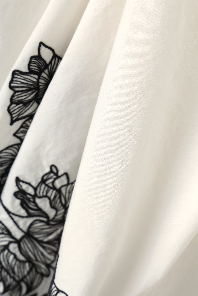軽やかなコットン素材を使用し、動くたびに裾の刺繍が揺れ、スタイリングにリズムをプラス。