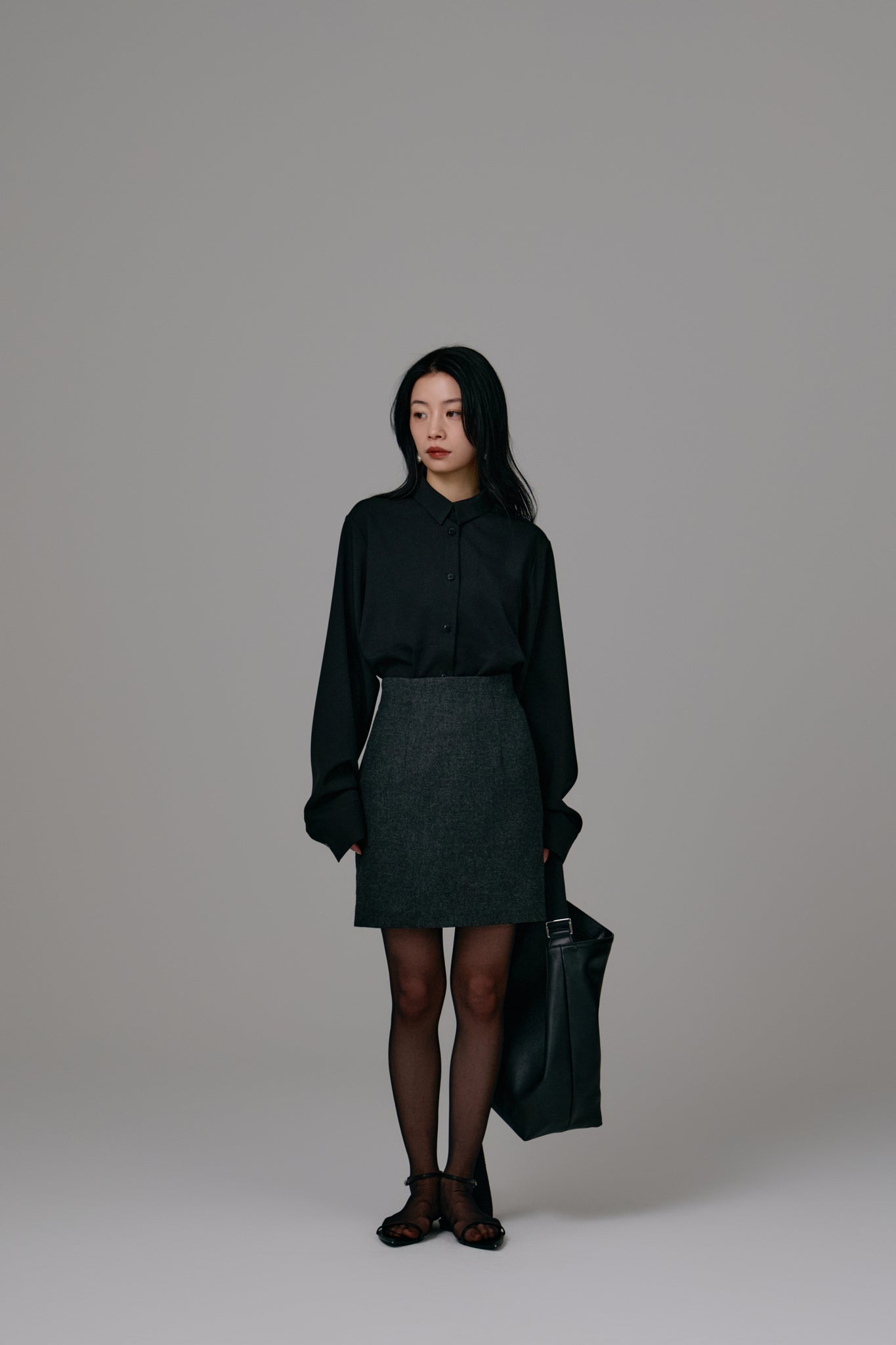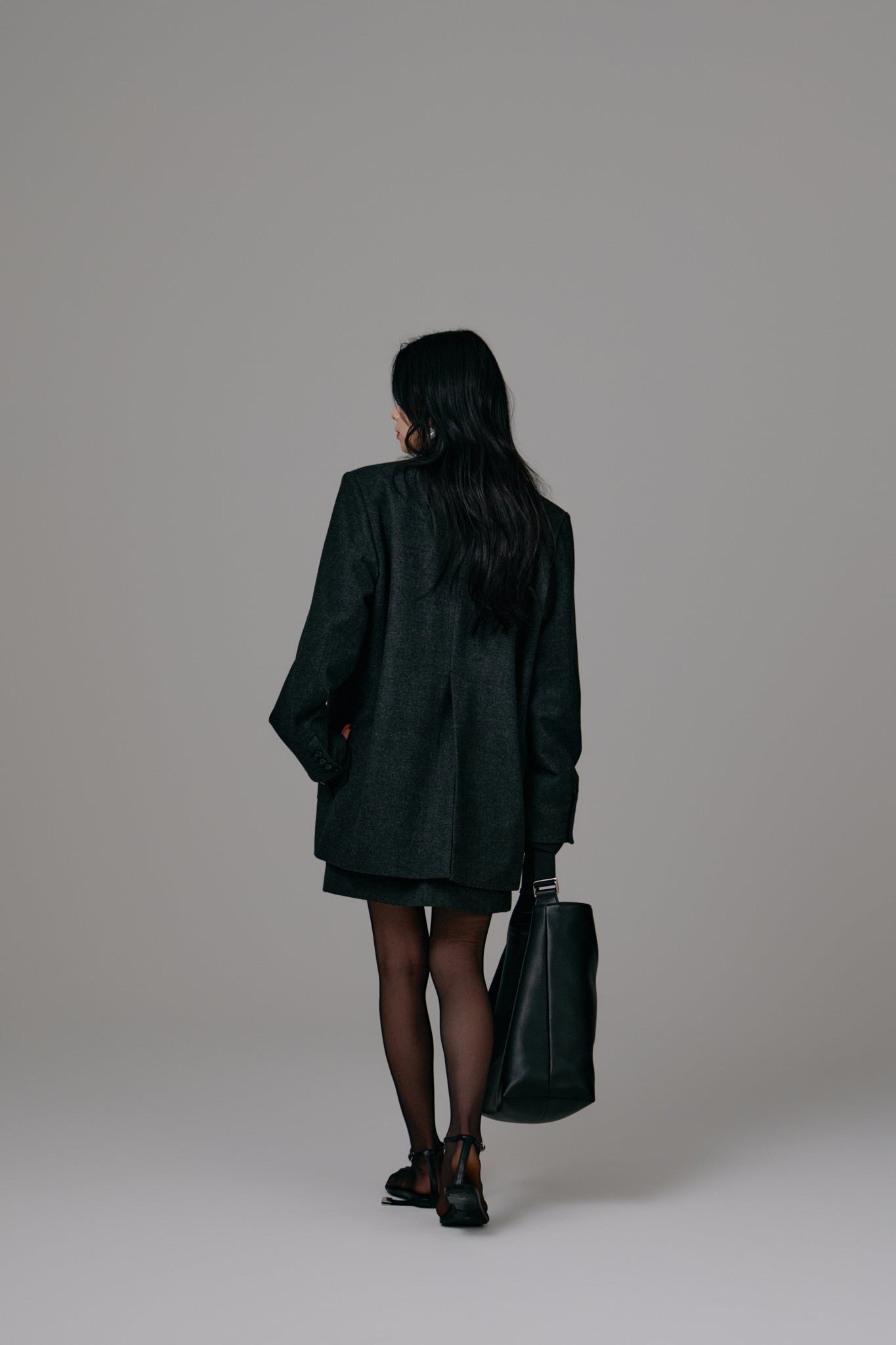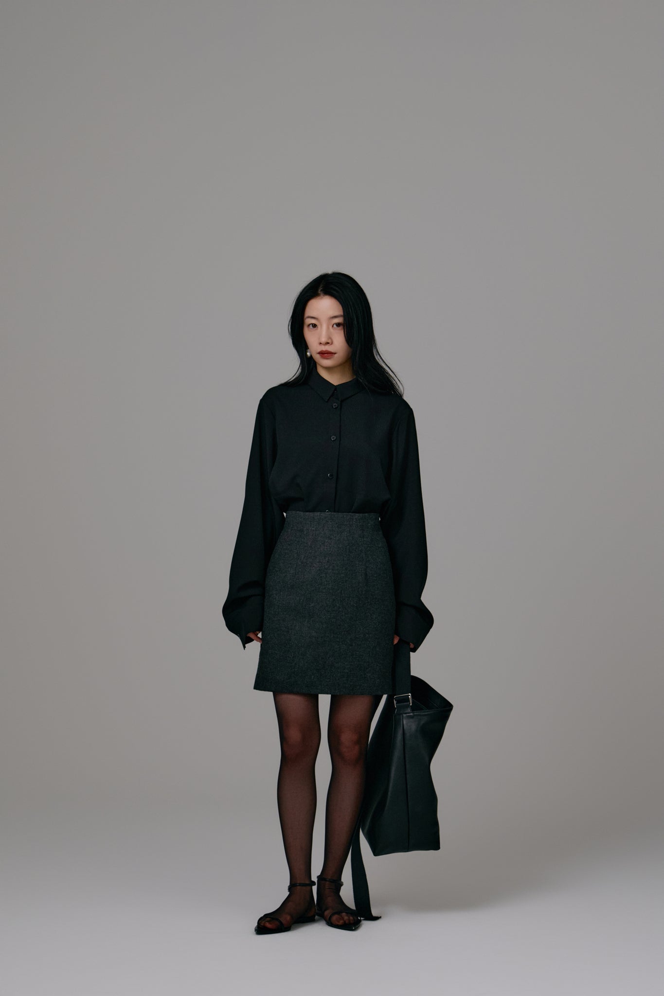 後ろ下がりのデザインと、動きに合わせてふんわりと広がるシルエットが軽やかな印象をプラスします。