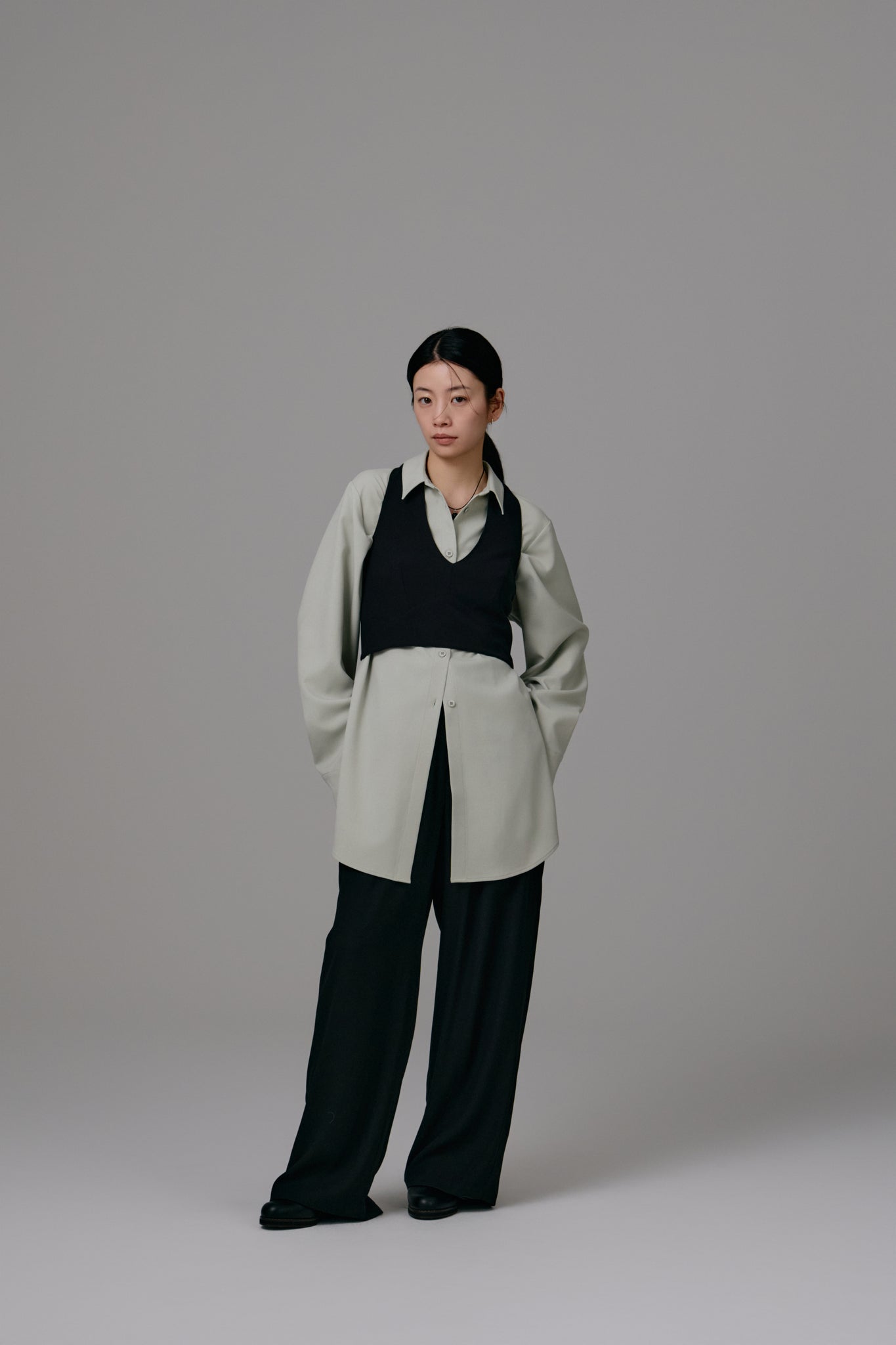 さまざまなボトムスと相性抜群で、幅広いコーディネートをお楽しみいただけるアイテムです。