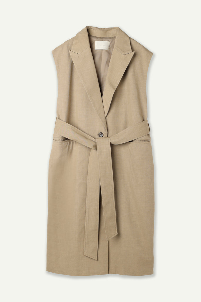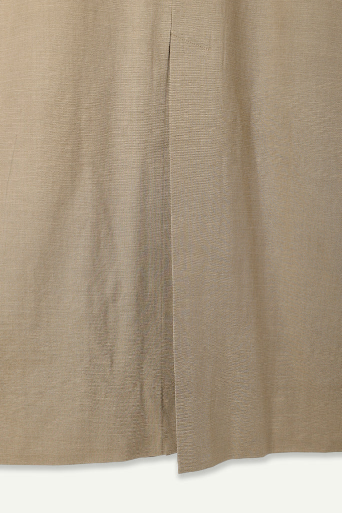 By creating a cocoon silhouette that widens the body and narrows the hem, it covers the upper arms and goes well with casual styling without being too conservative.