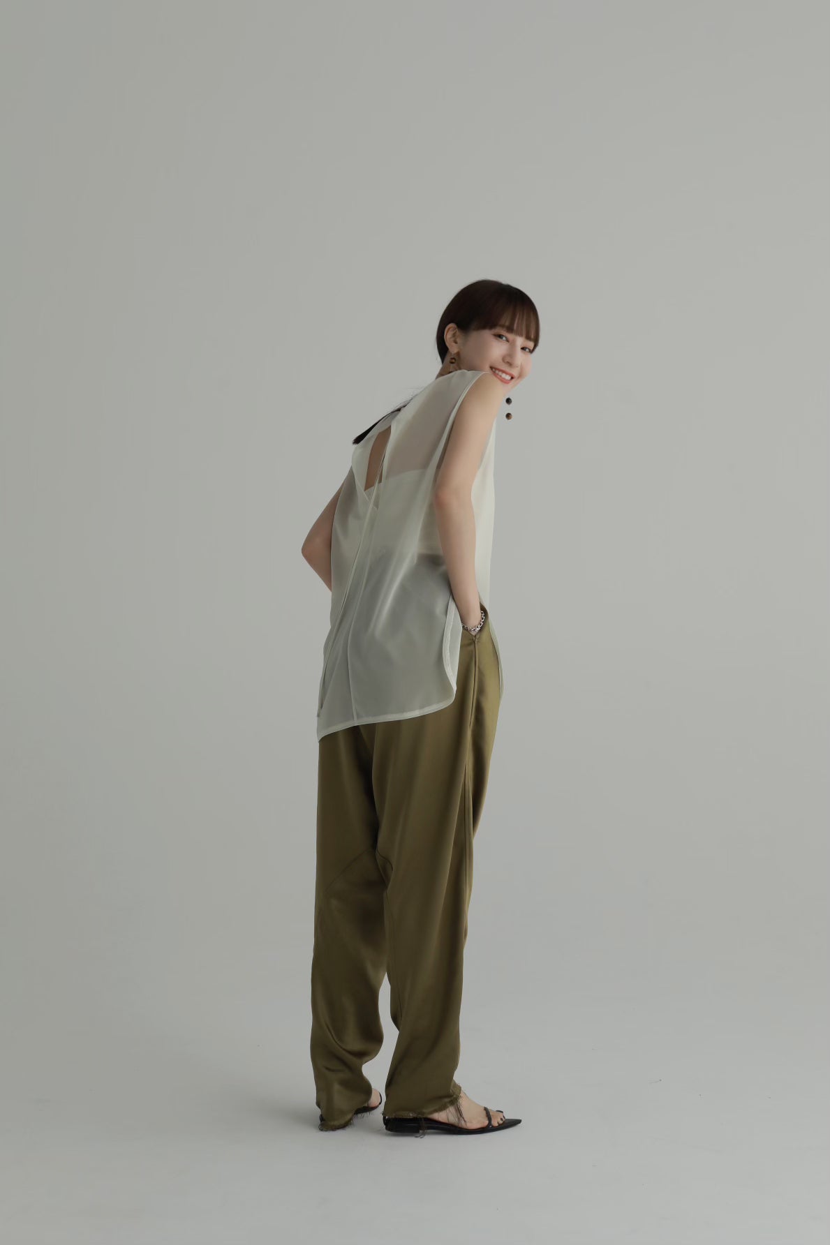 滑らかな美しい艶が魅力のマットサテンを採用したバルーンパンツ。