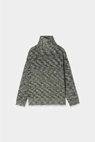 太さに変化があるスラブ糸を選定し、独特なテクスチャーや立体感のあるトップスに編み上げました。