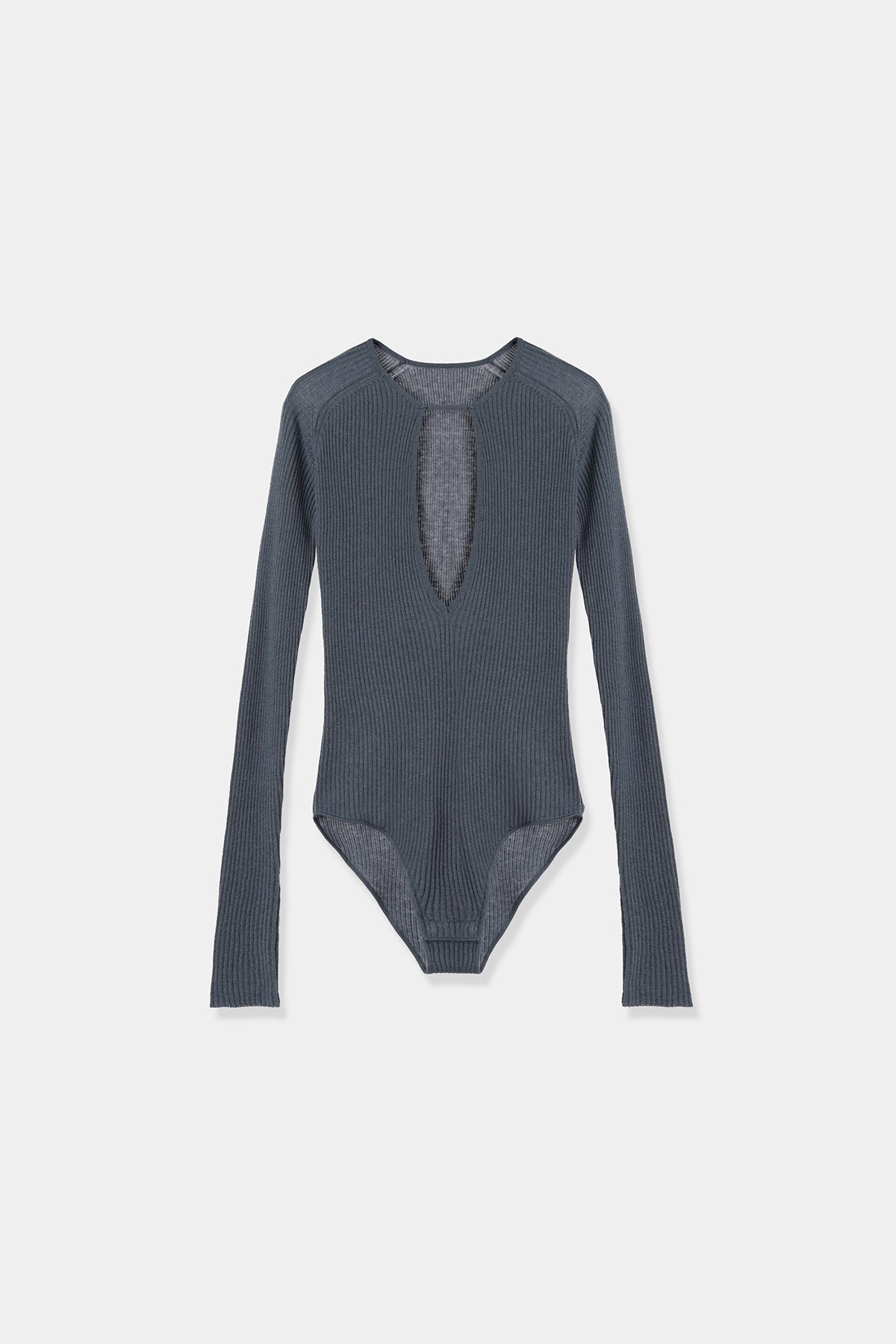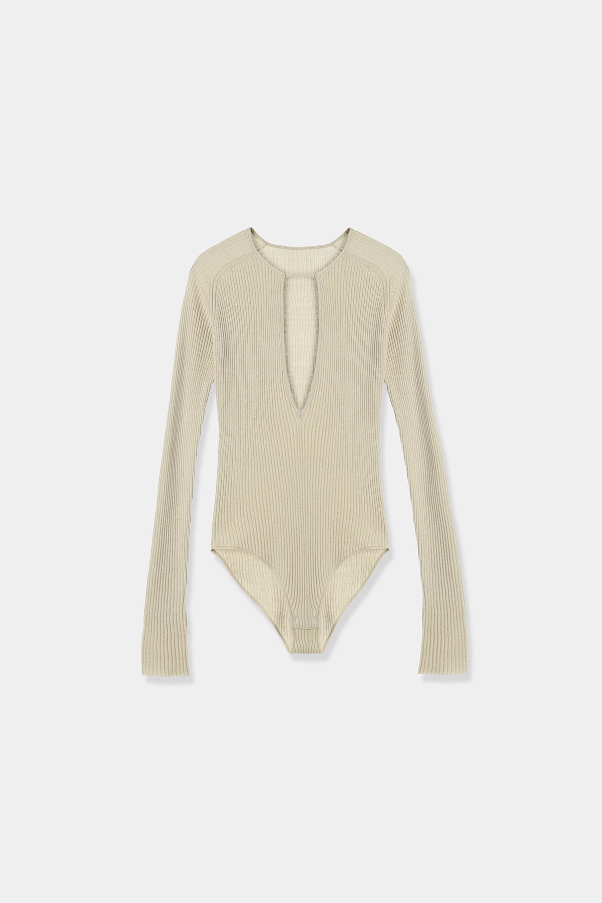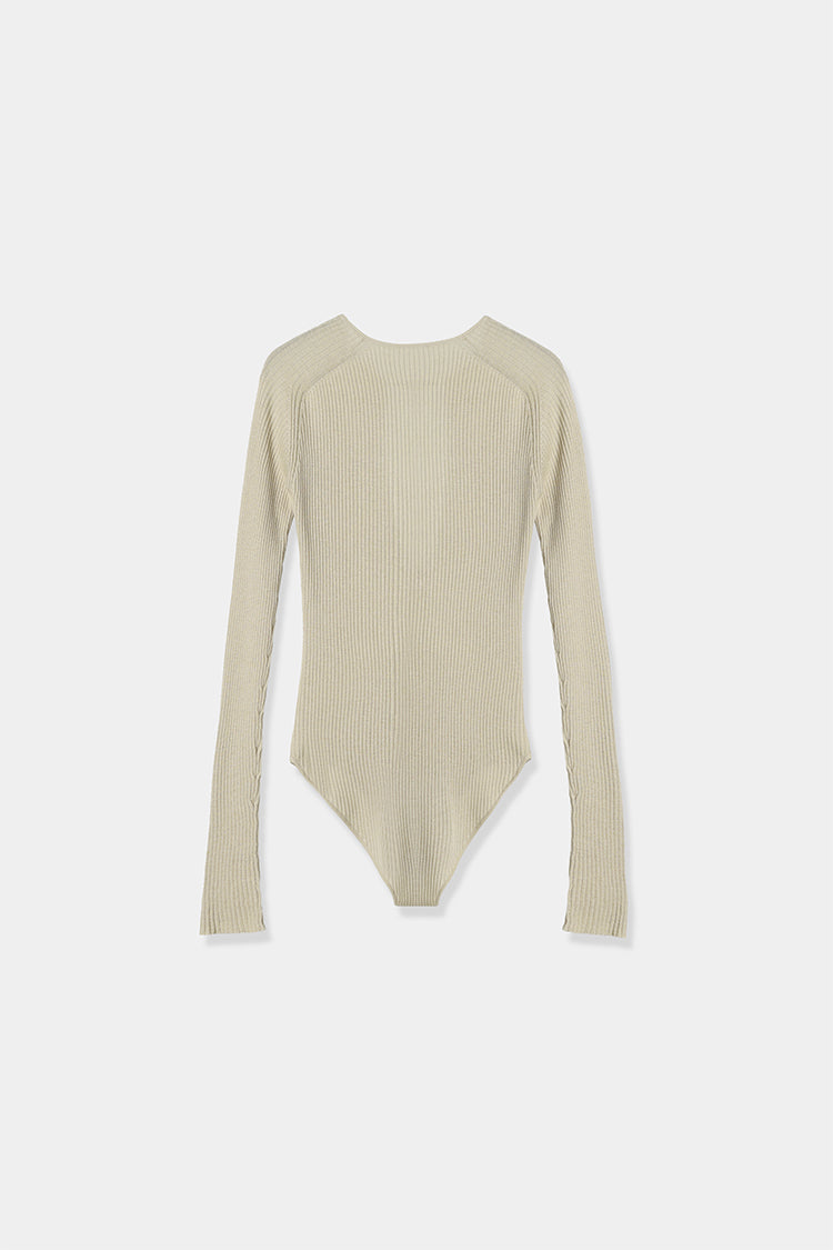 ボトムスインした際に腰回りがすっきりと見えるボディスーツ仕様は、コーディネートに取り入れやすいアイテムです。
