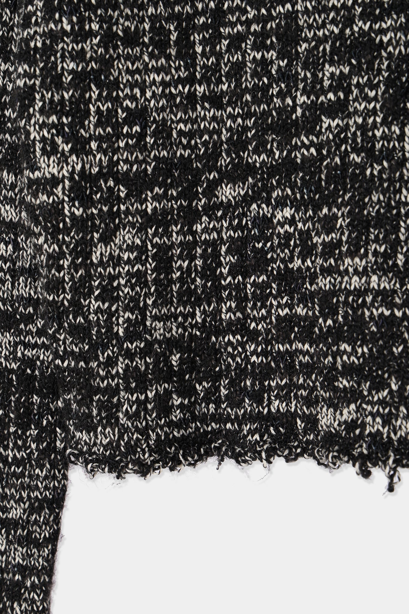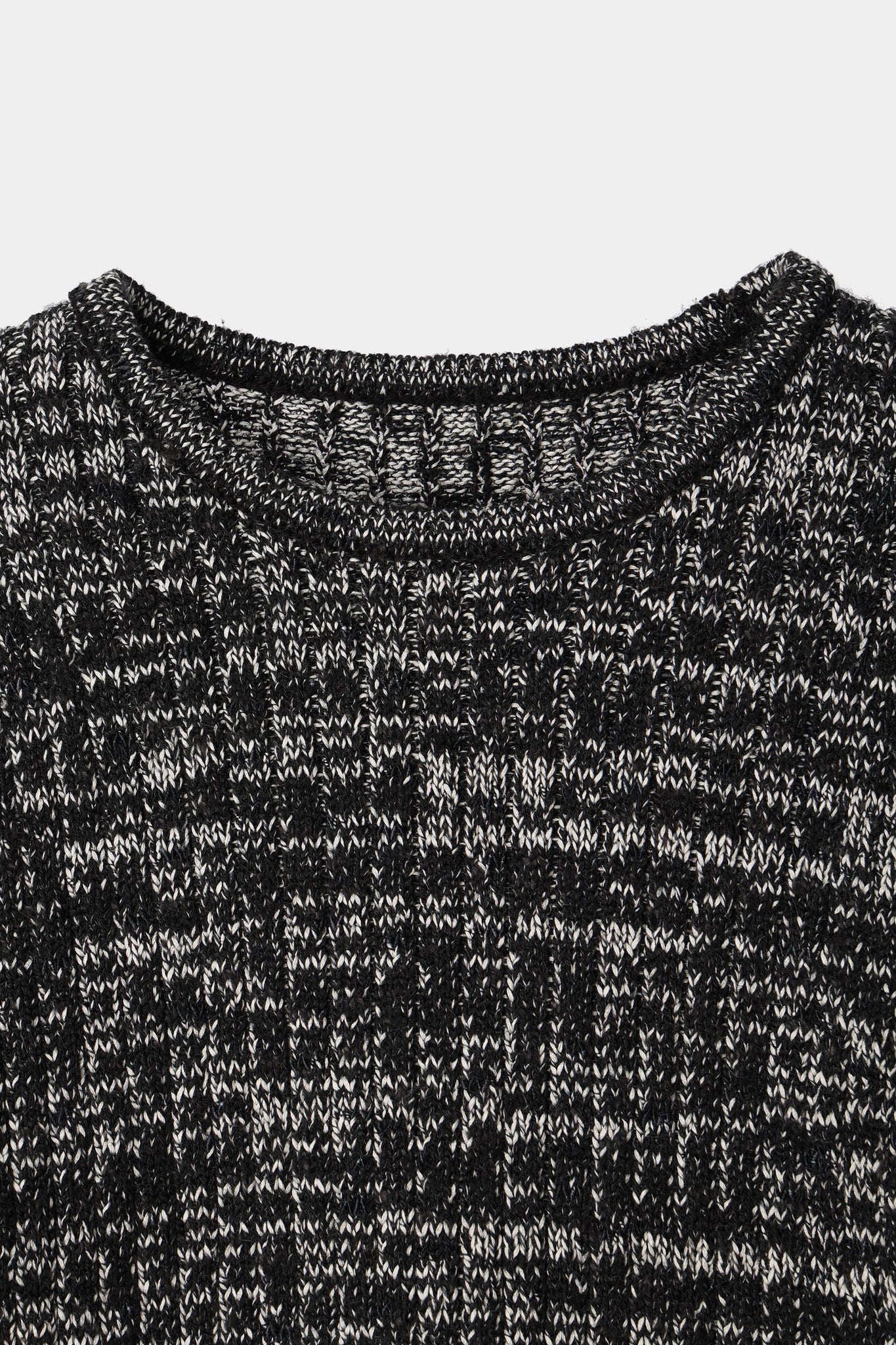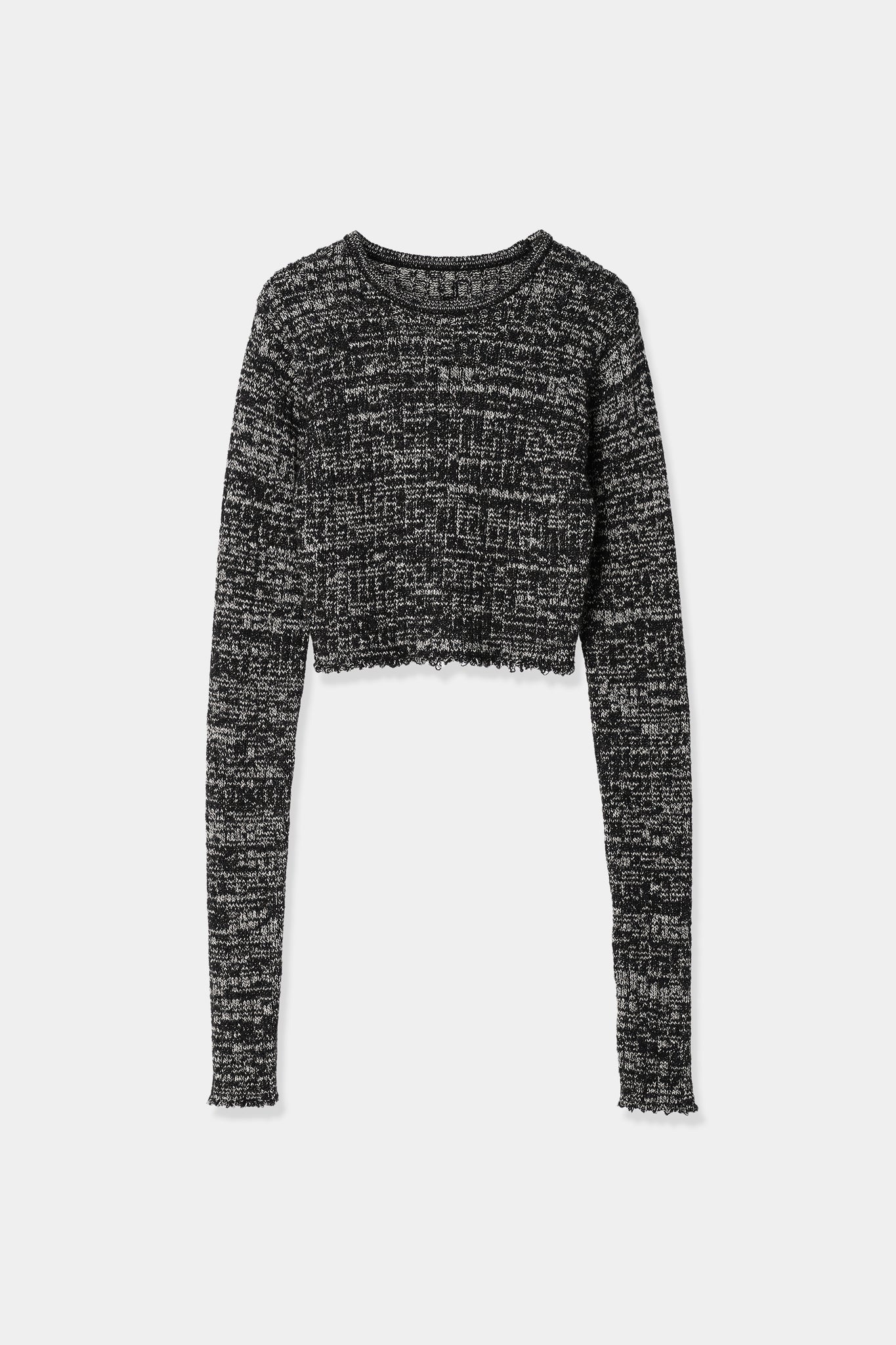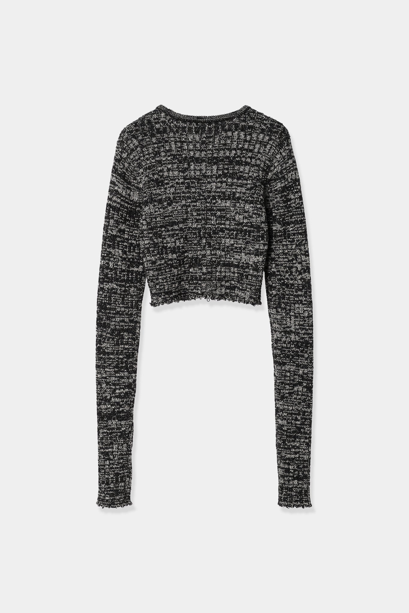 ミックス糸を使用した表情のある編み地が魅力のクロップドニット。