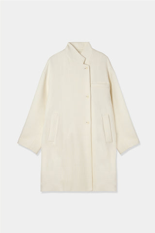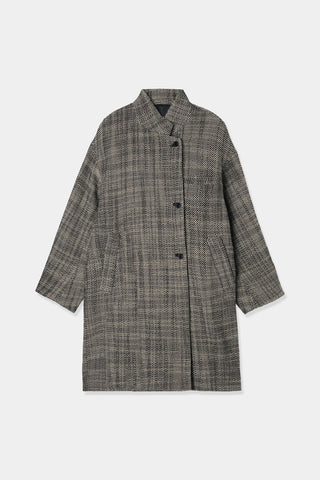 表面感のあるツイード生地でお仕立てしたダブルボタン仕様のミドルコート。