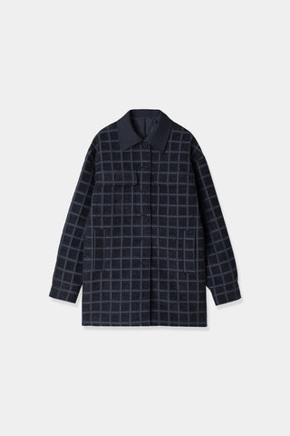 セットアップのvelvet jacquard check pantsとのコーディネートは勿論、シャツジャケットとして様々なスタイリングをお楽しみいただけます。