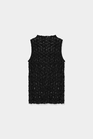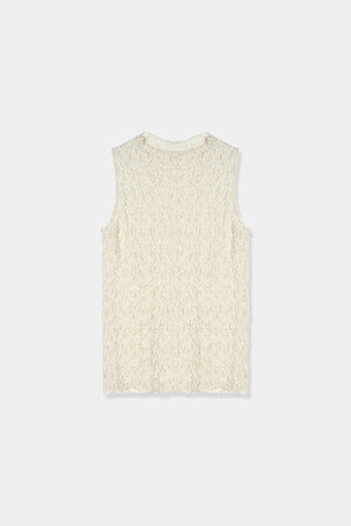肌を程よく透かすレース素材が軽やかさを演出し、単品使いはもちろん、レイヤードスタイルにも映えるデザイン。