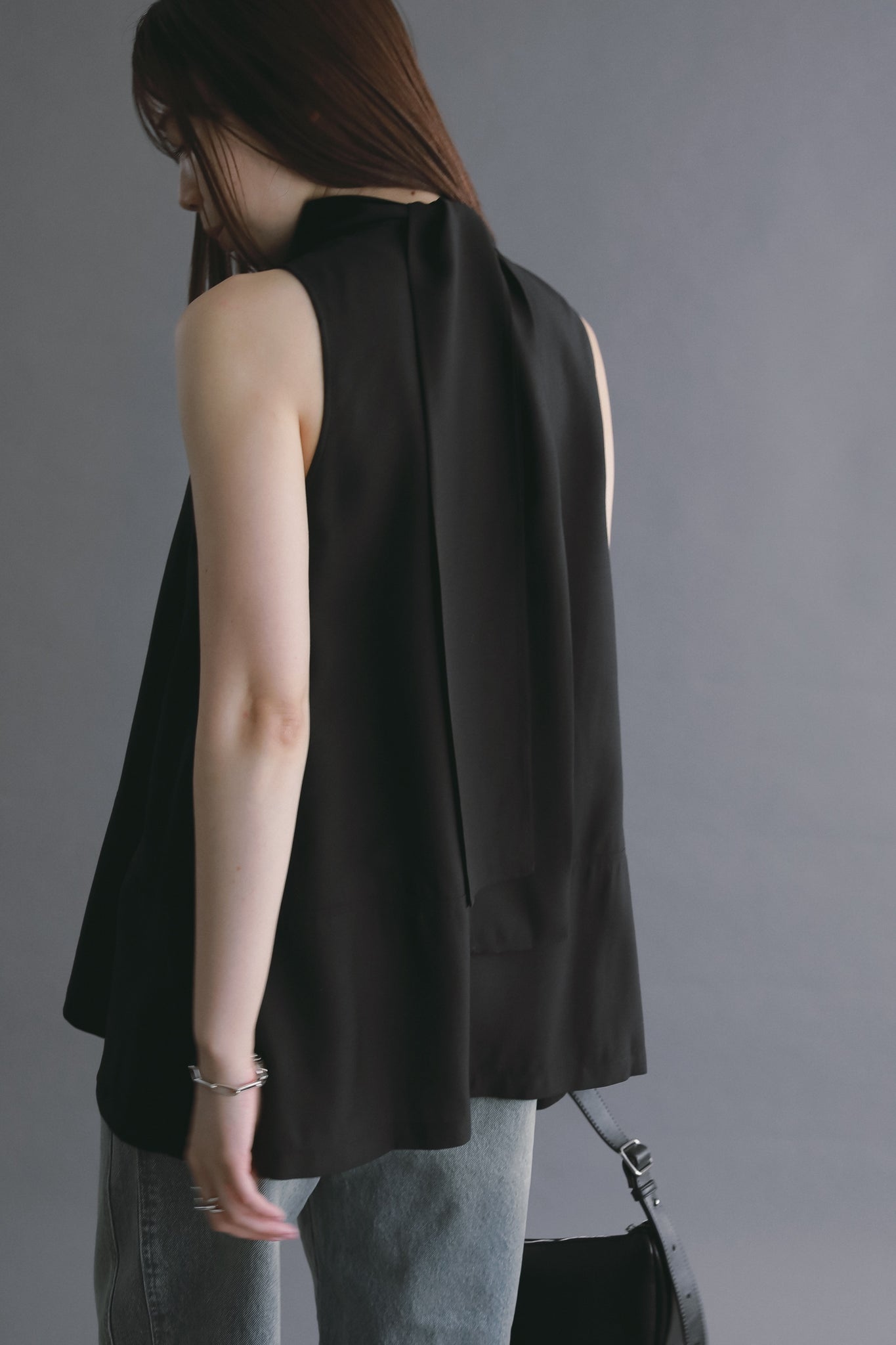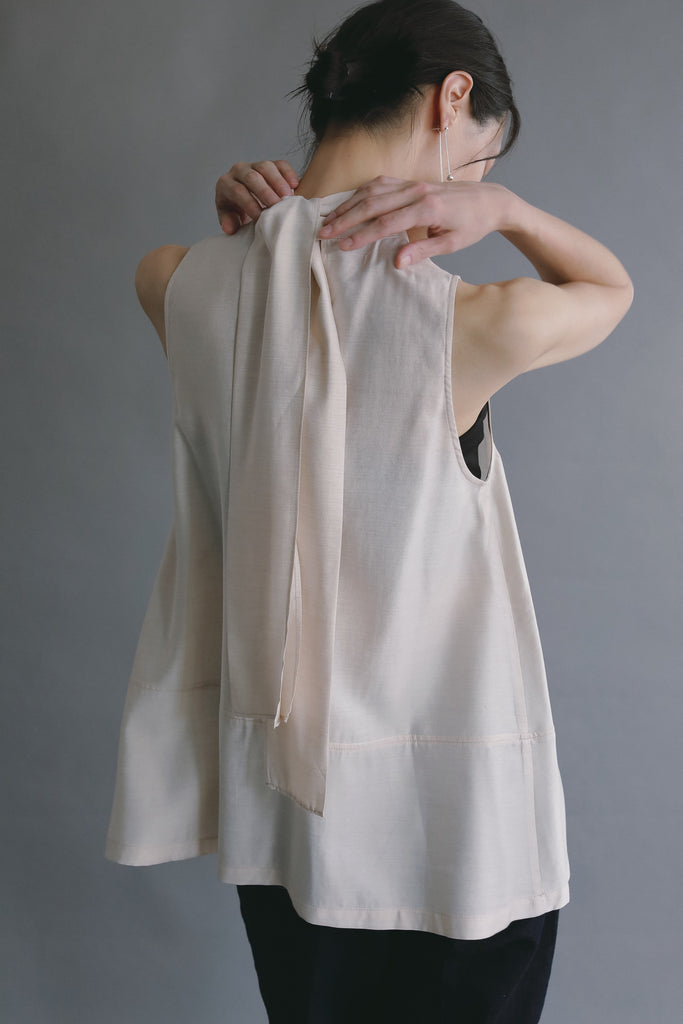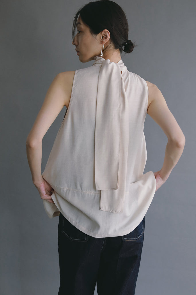長めのバックリボンが印象的なノースリーブブラウス。