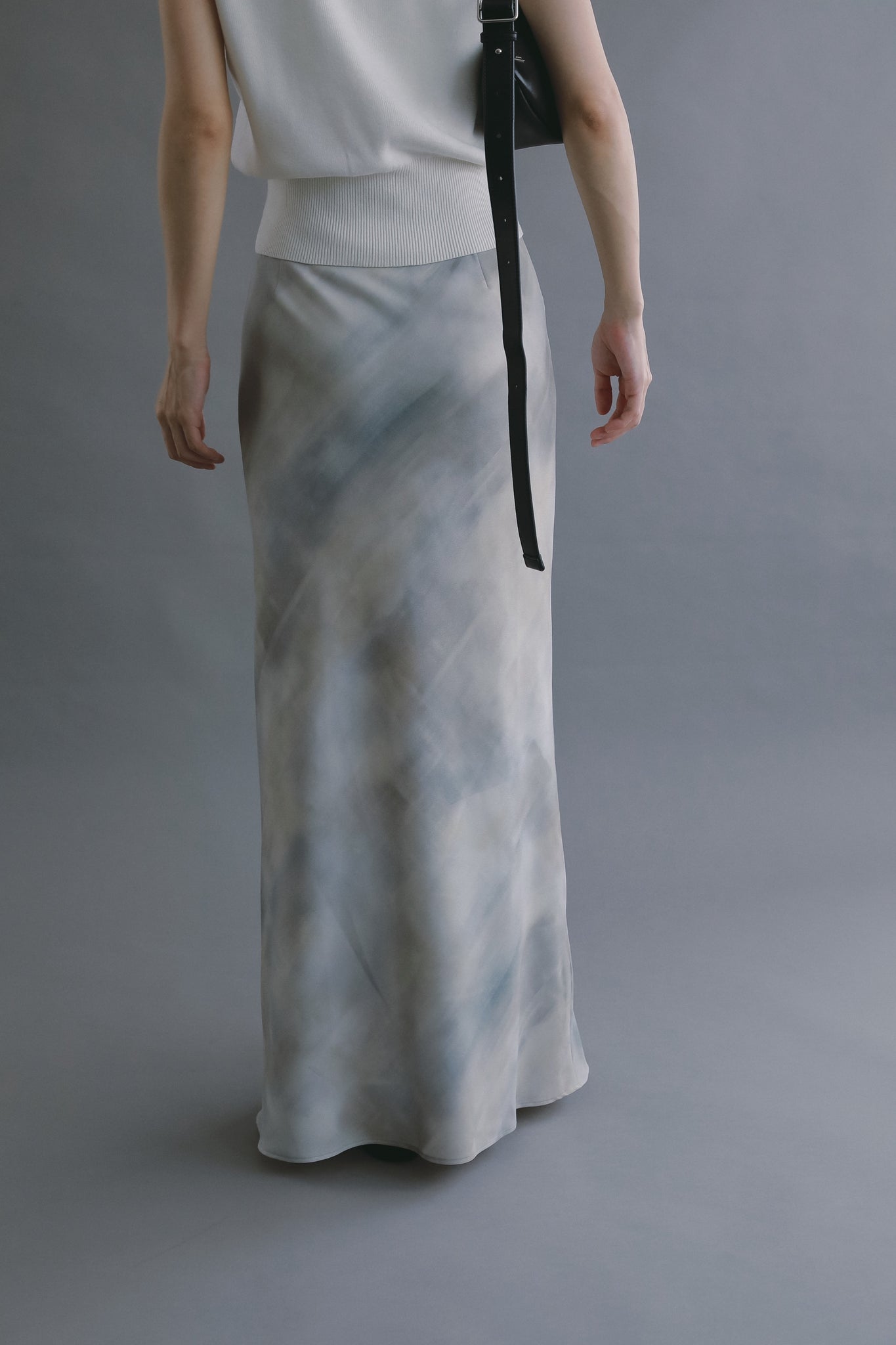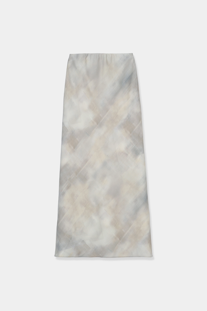 lourenオリジナルの blurred(ぼかし)プリント を施したナロースカート。