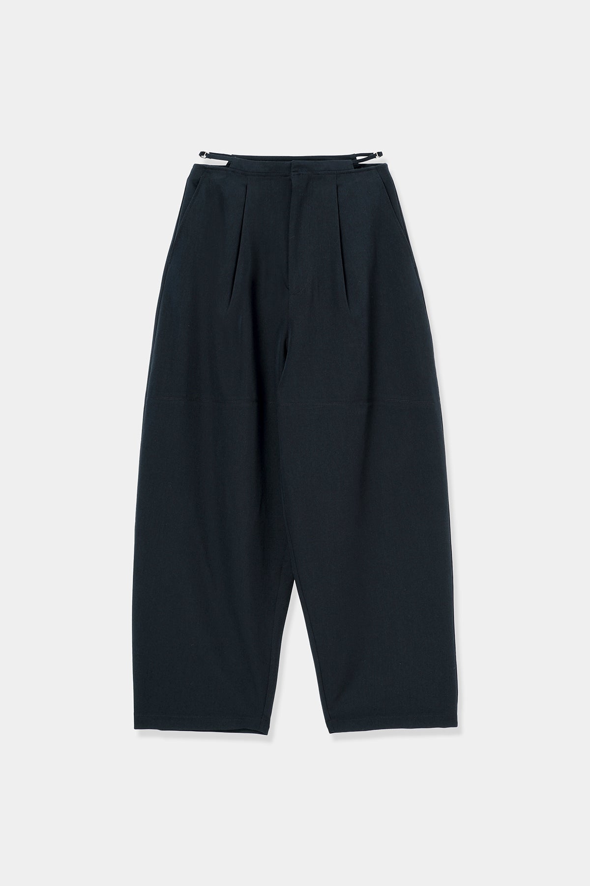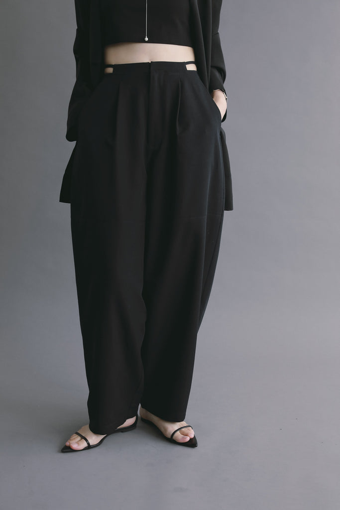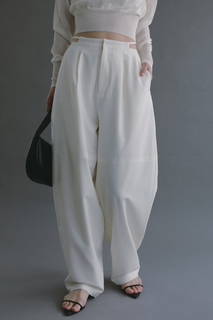 深めのタックを効かせた、立体感のあるコクーンシルエットパンツ。