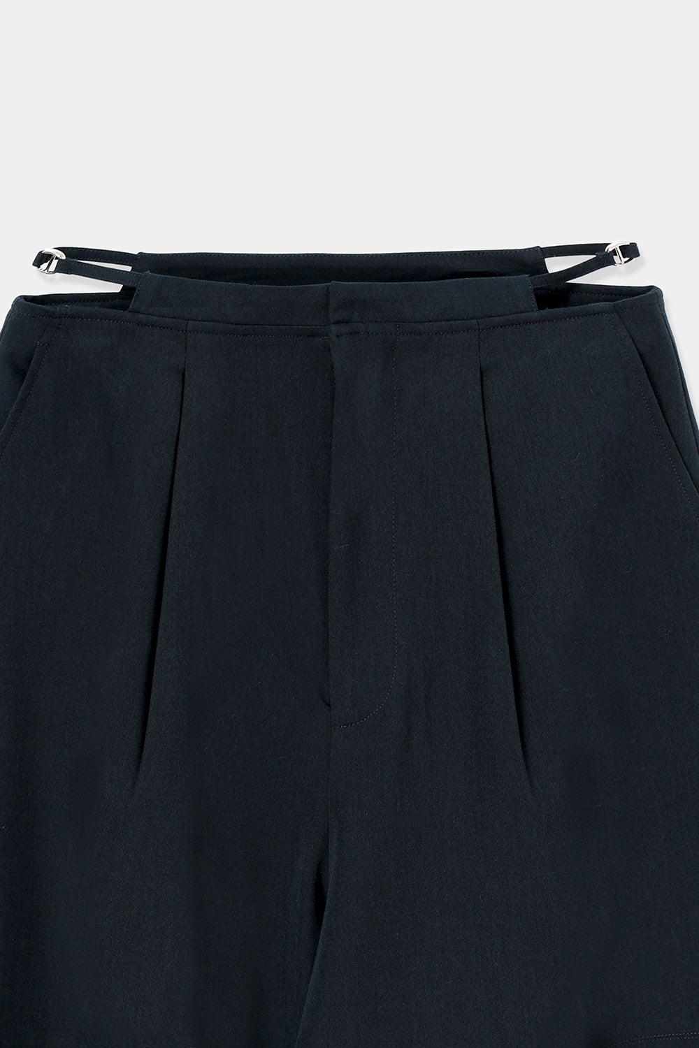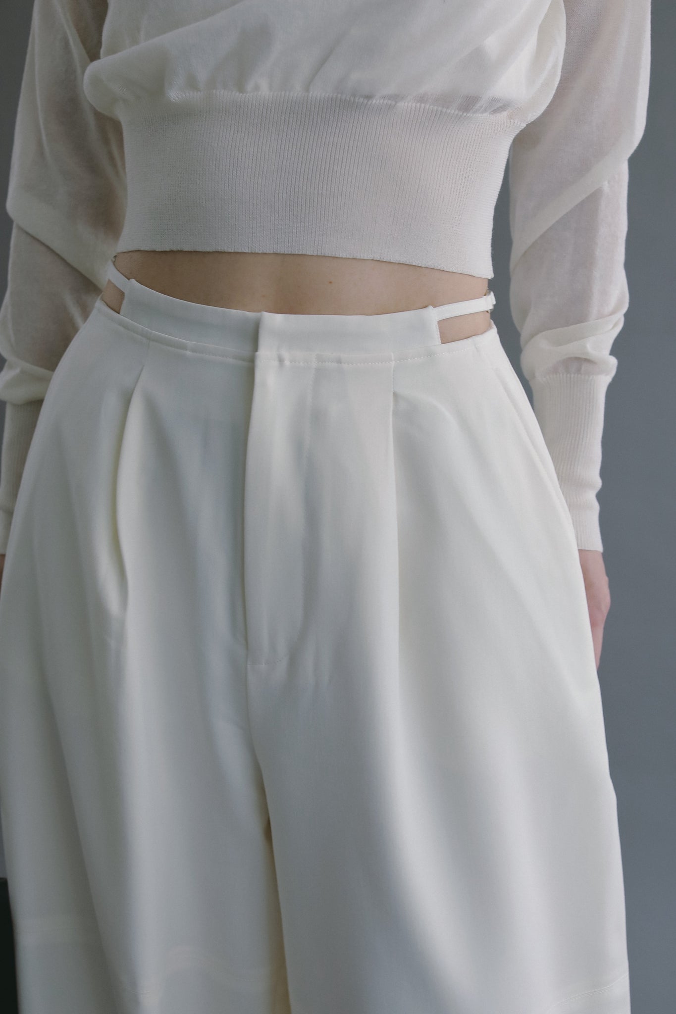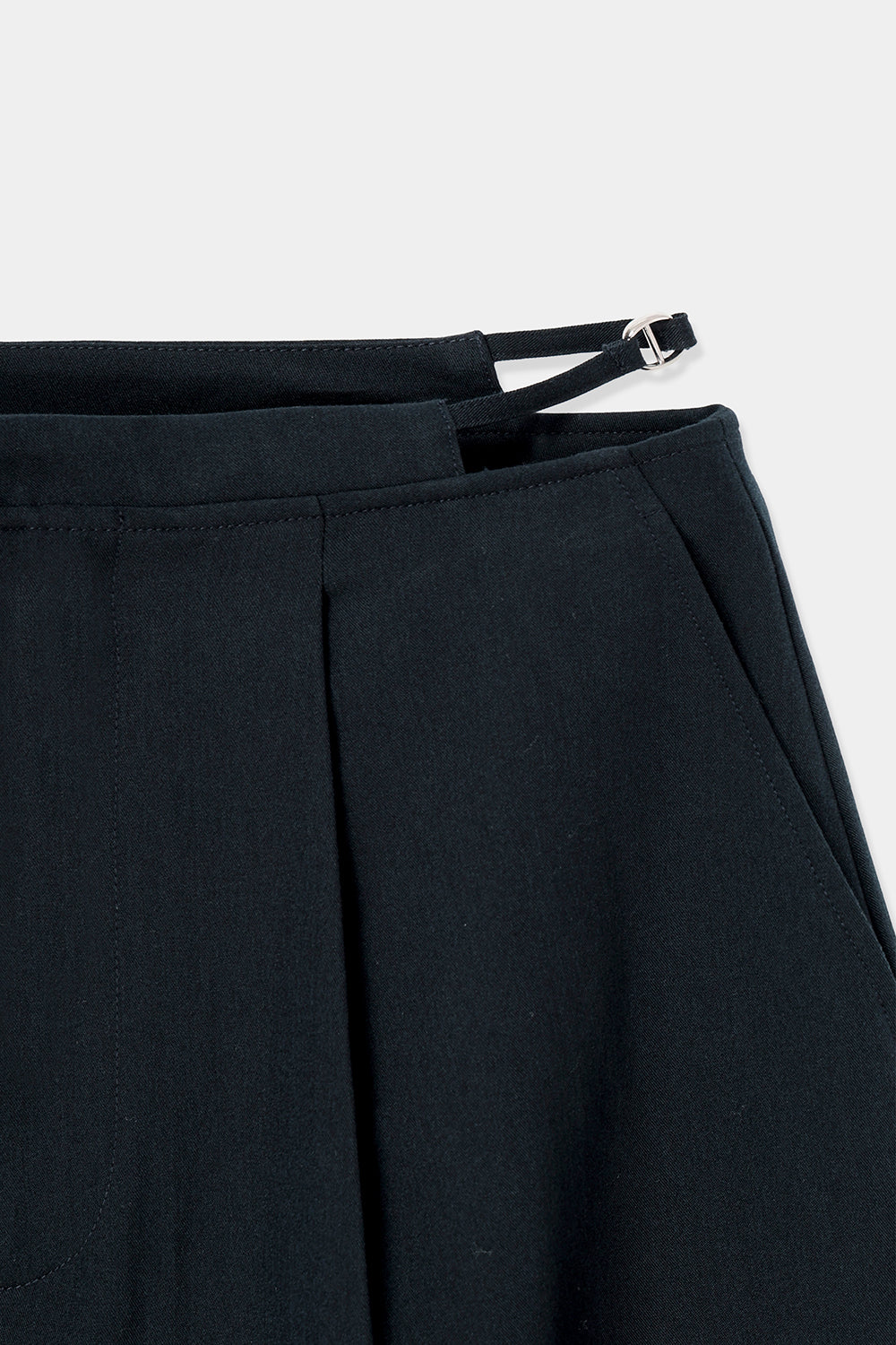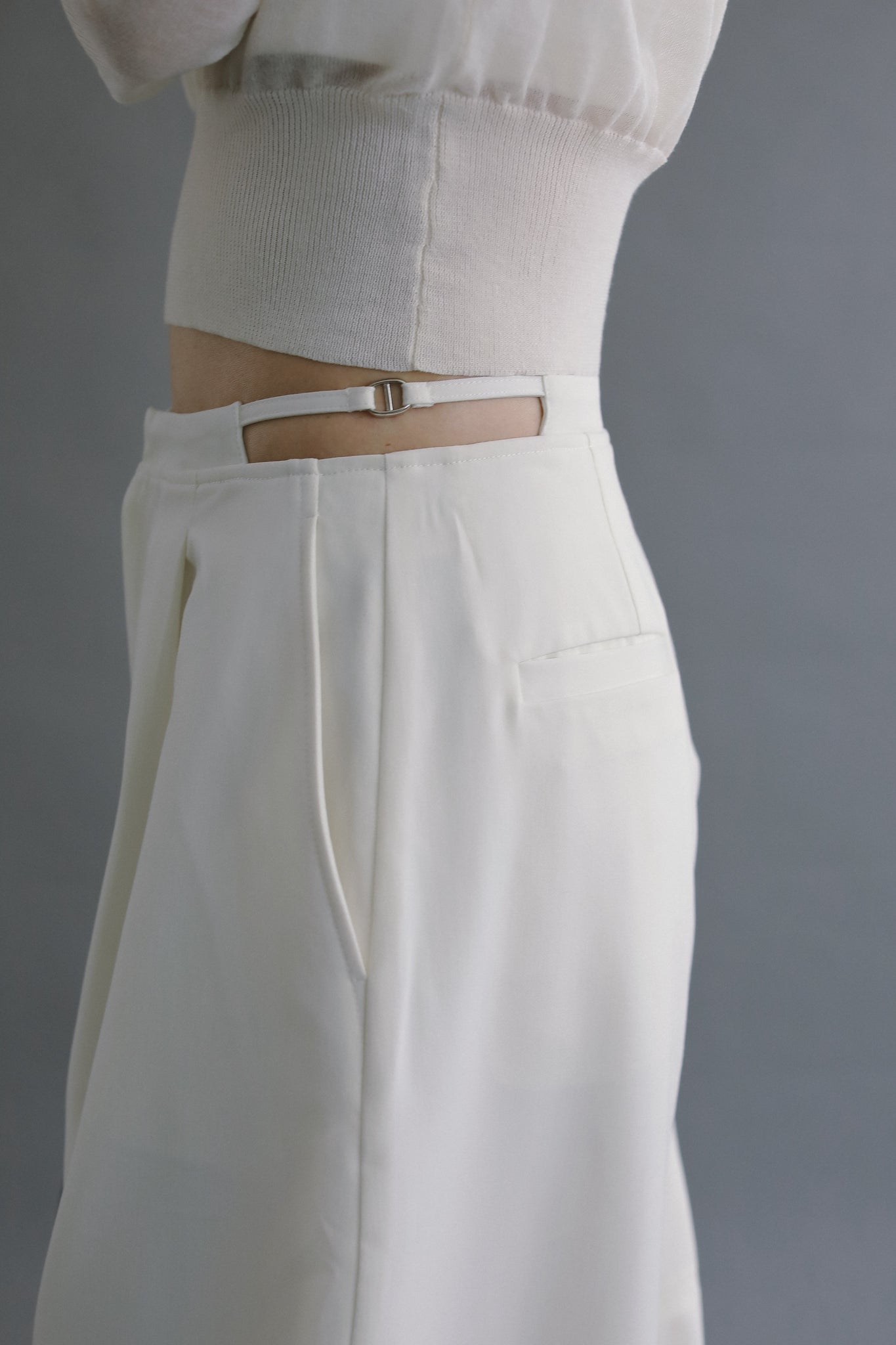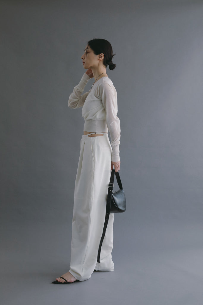 サイドウエストには華奢なバックルベルトをあしらい、さりげないアクセントに。