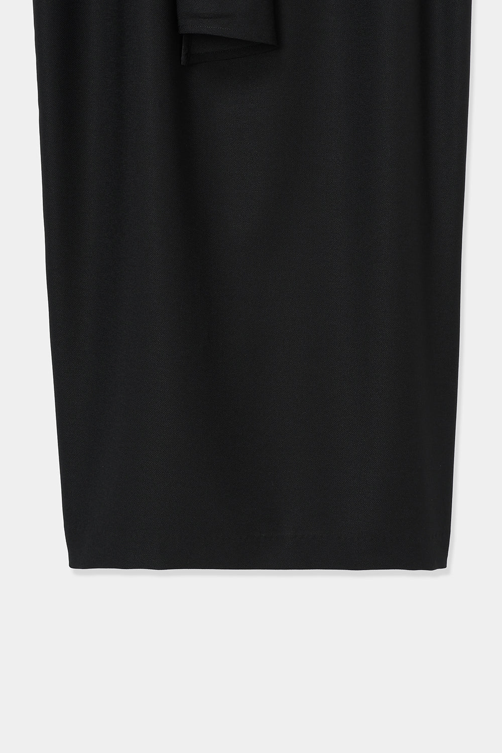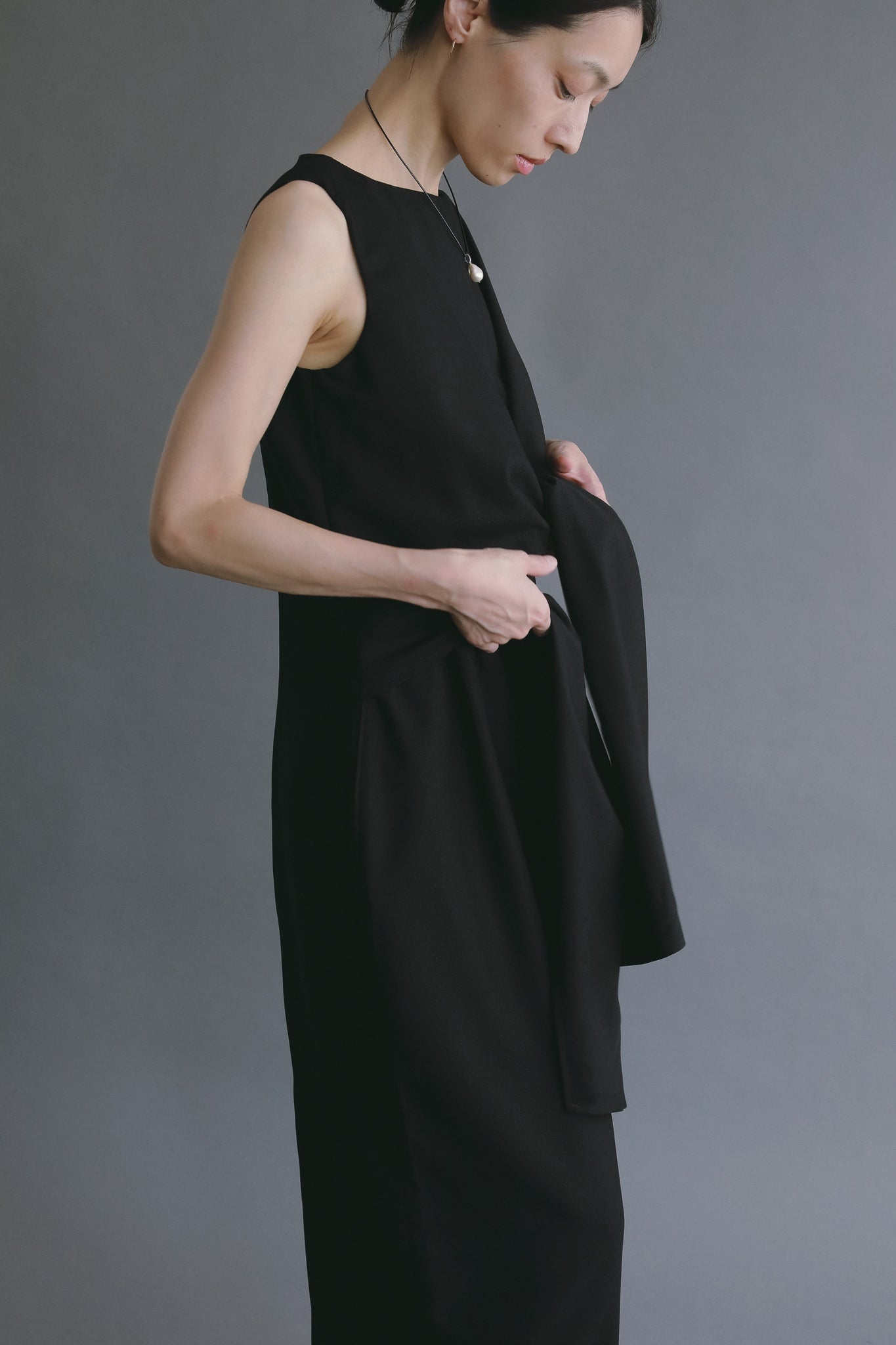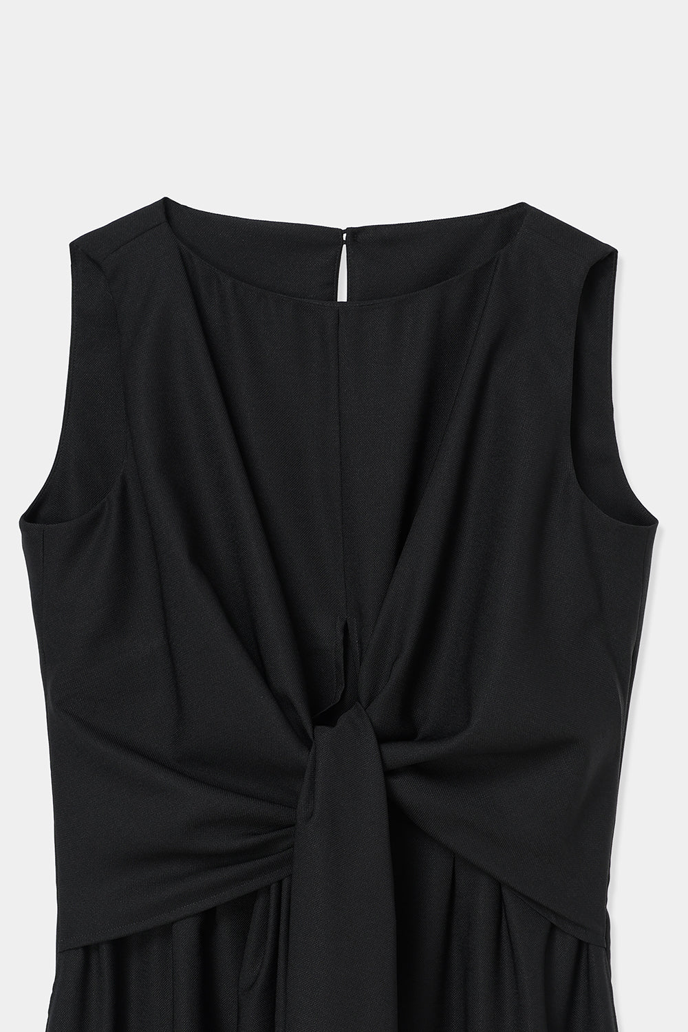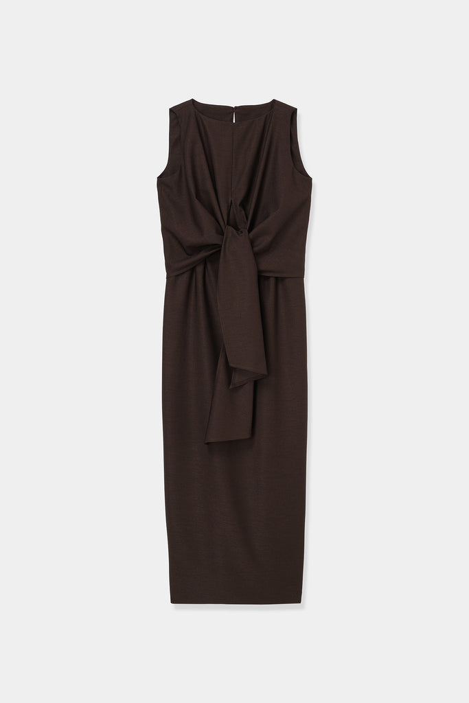 ウエスト部分で結ばれた大きなタイが、自然なドレープを生み出し、シンプルながらも視線を惹きつける一着です。