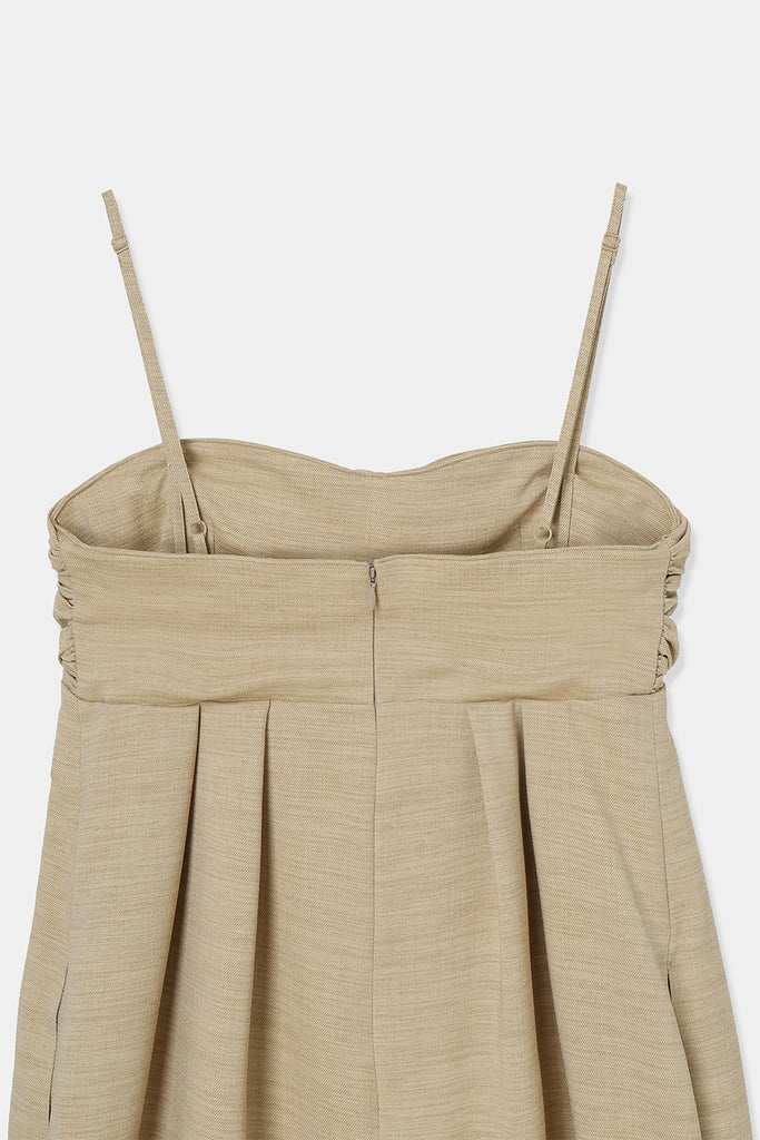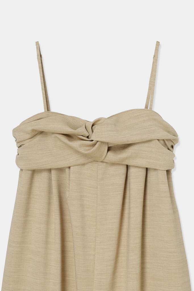 華奢なキャミソール型のトップスとゆとりのあるコクーンシルエットが織りなすバランスがlourenらしいアイテム。