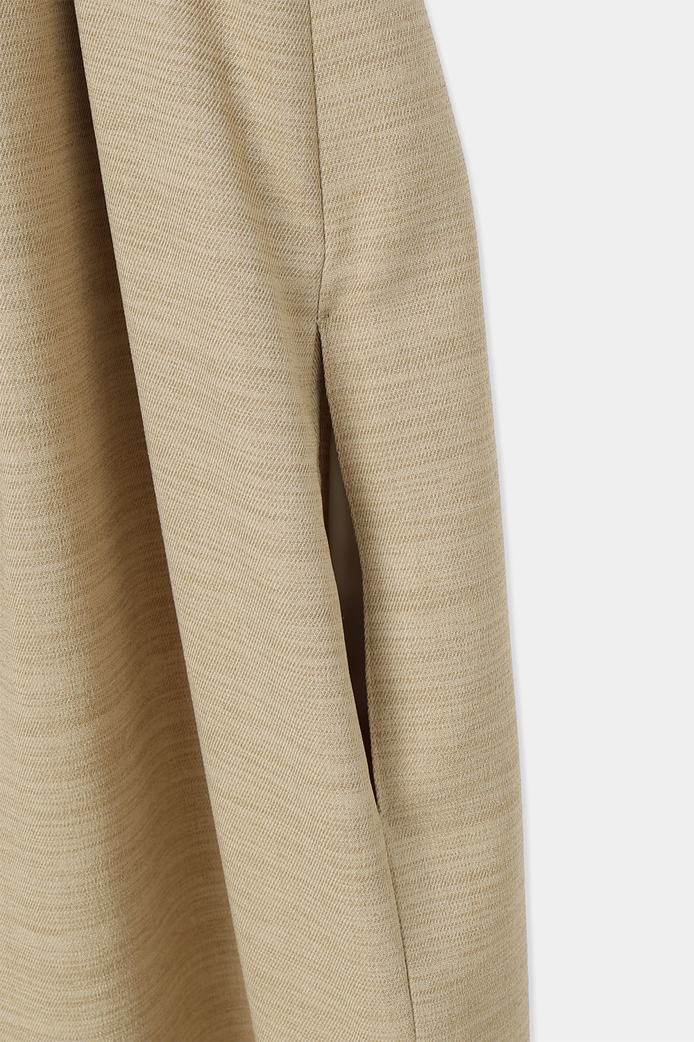 ドライタッチでシワになりにくいスラブツイル生地を採用し、上品な表情と機能性を兼ね備えた一着。