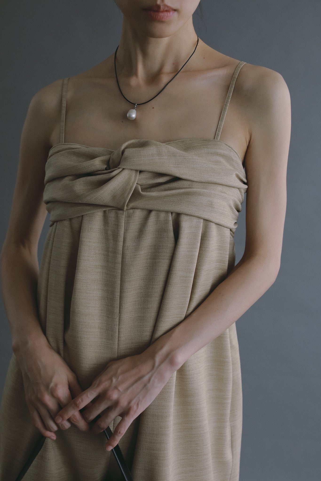胸元のツイストディテールが立体的な陰影を描き、視線を惹きつける印象的なデザインです。