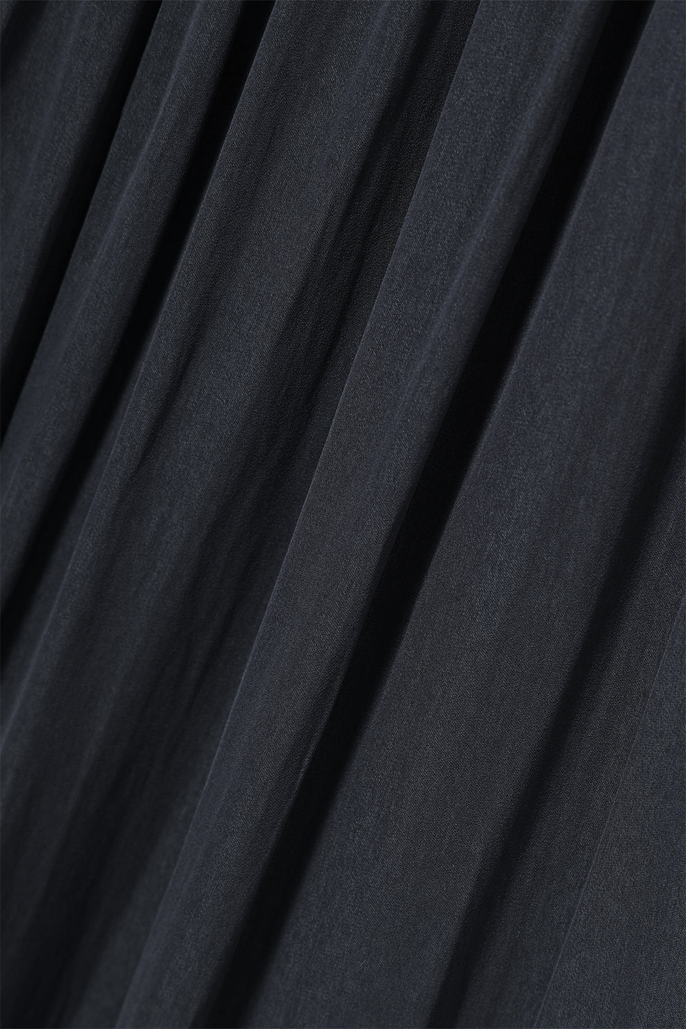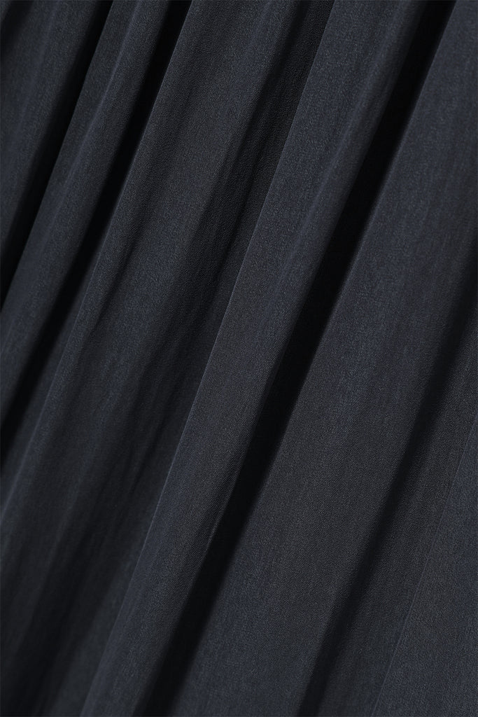 細やかなギャザーから流れるドレープが、歩くたびにふんわりと揺れ、軽やかで女性らしい雰囲気を演出します。