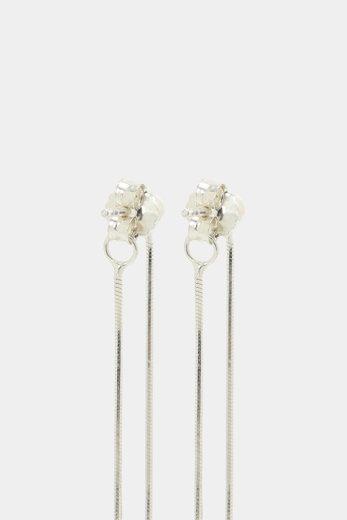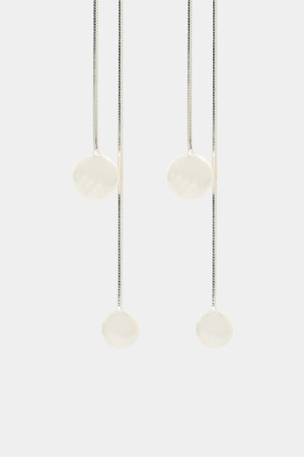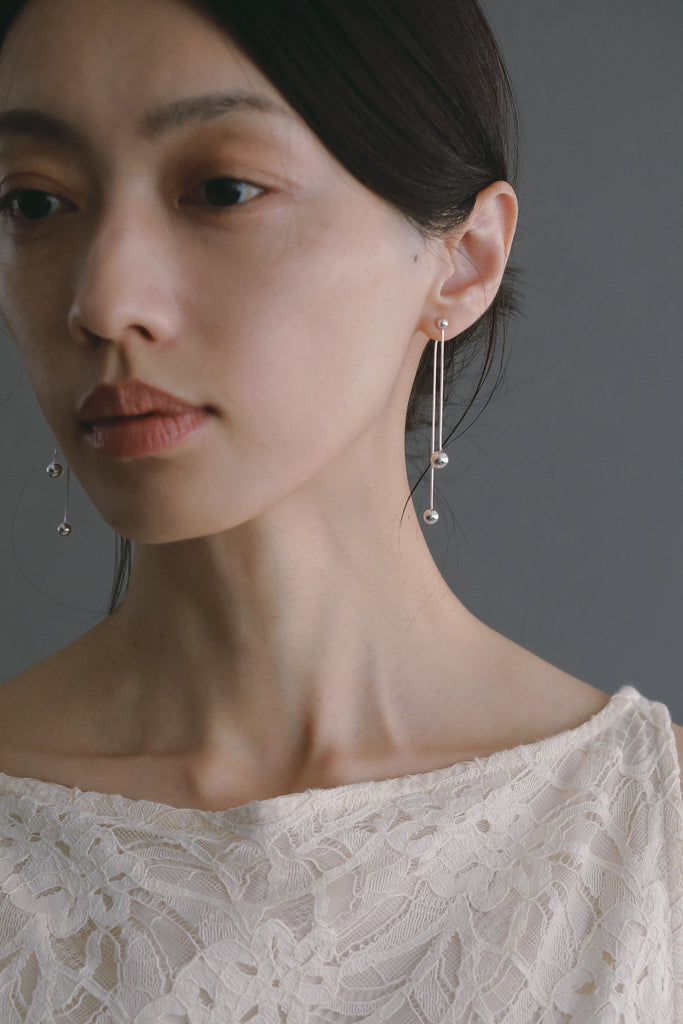 サイズの異なるガラスメッキボールをあしらったロングピアス。