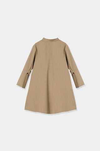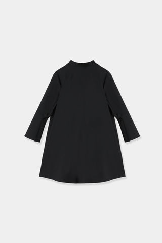 オーバーサイジングながら、七分袖に設定し長めのカフスにスリットを入れることで、手元から抜け感が生まれ、全体的にまとまりのある一着に仕上げました。