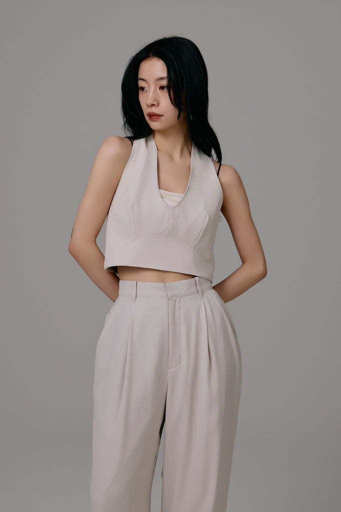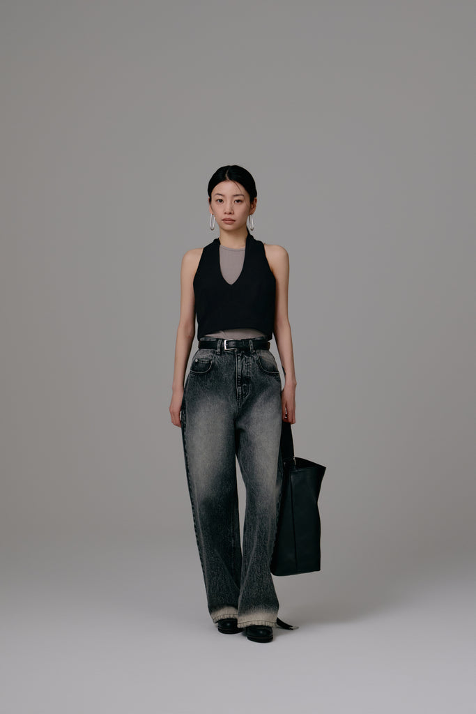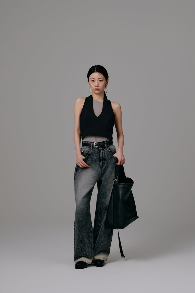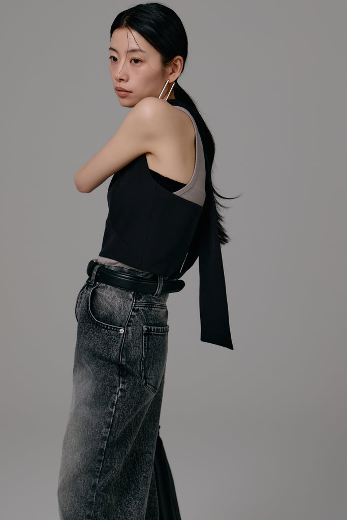 エッジの効いたカッティングが目を引くビスチェ。