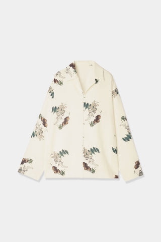 オリジナルのボタニカルモチーフをプリントしてお仕立てしたシャツブラウス。