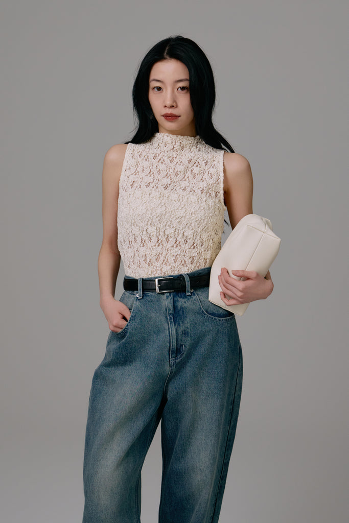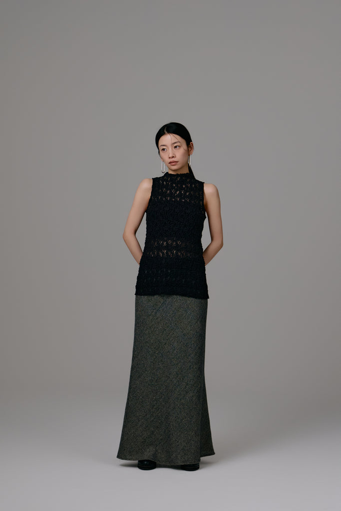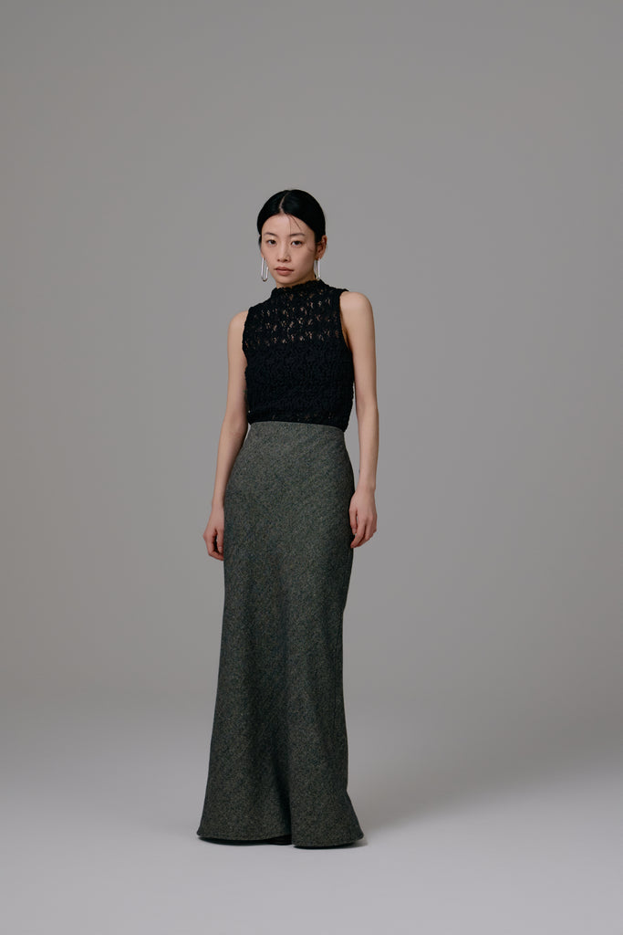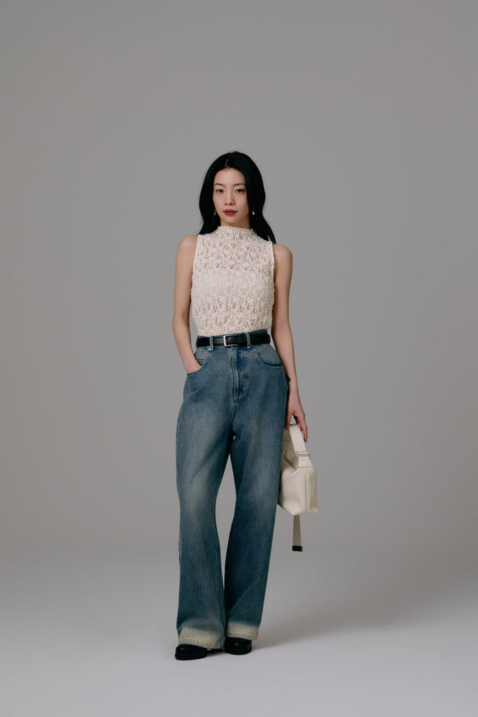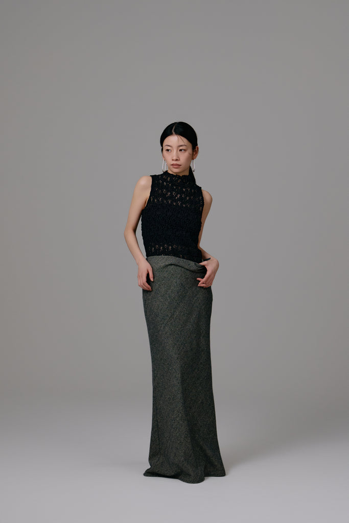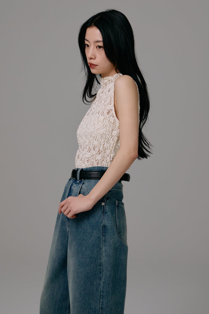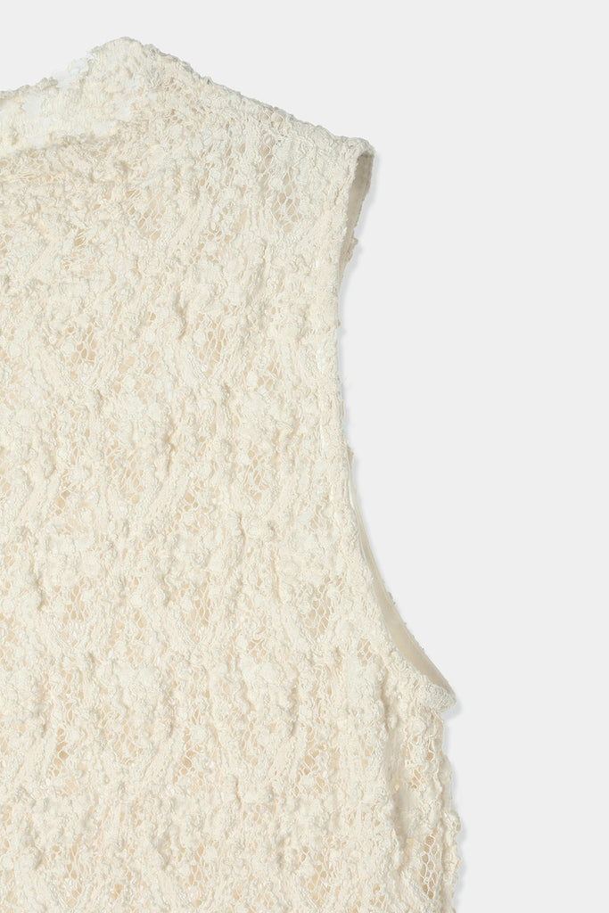 肌を程よく透かすレース素材が軽やかさを演出し、単品使いはもちろん、レイヤードスタイルにも映えるデザイン。