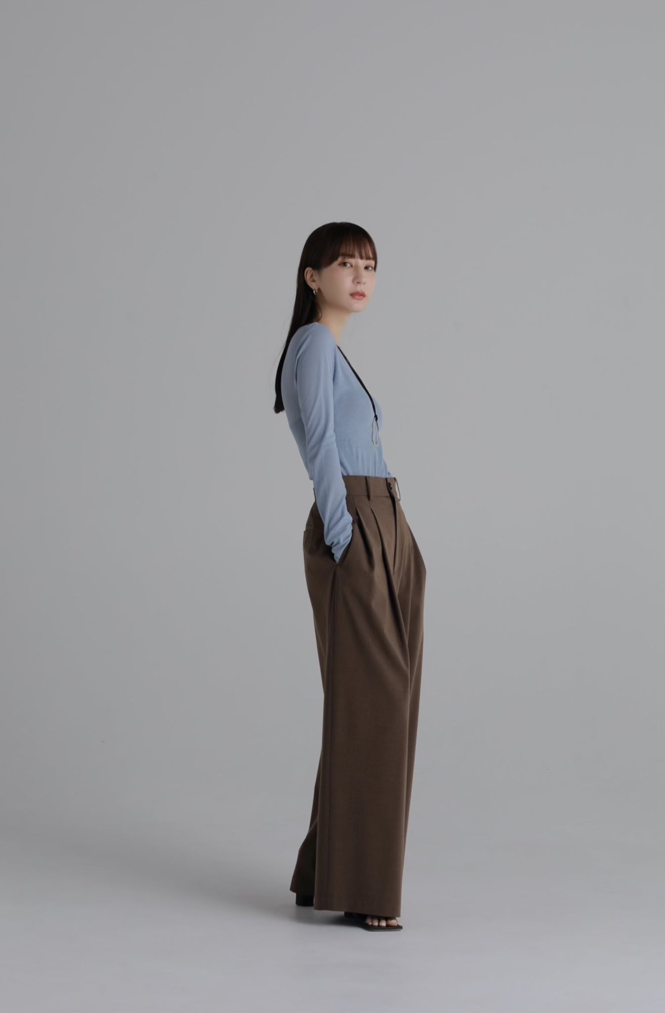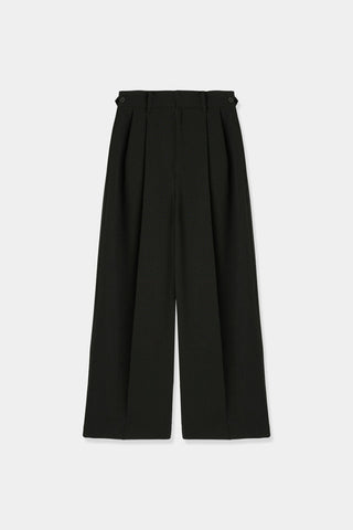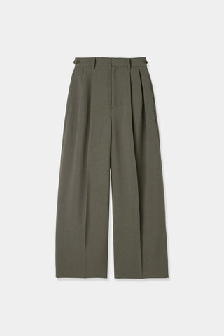 シンプルなワイドシルエットでありながら、ウエストのタックにより程よいボリューム感と綺麗なシルエットを実現。
