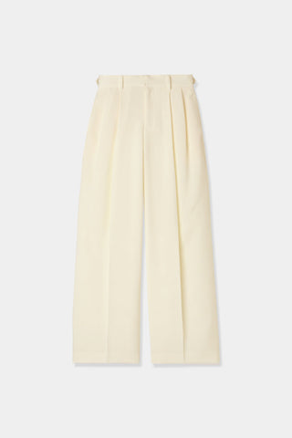 毎シーズンご好評いただいているワイドパンツが今シーズンも登場。ウエストの2タックにより、イージーながら美しいシルエットを叶えてくれます。